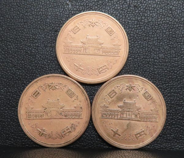 10円青銅貨(ギザあり) 昭和33年 3枚の出品になります。