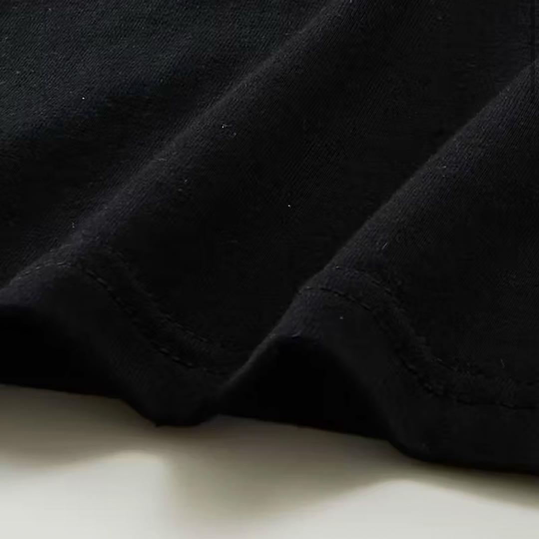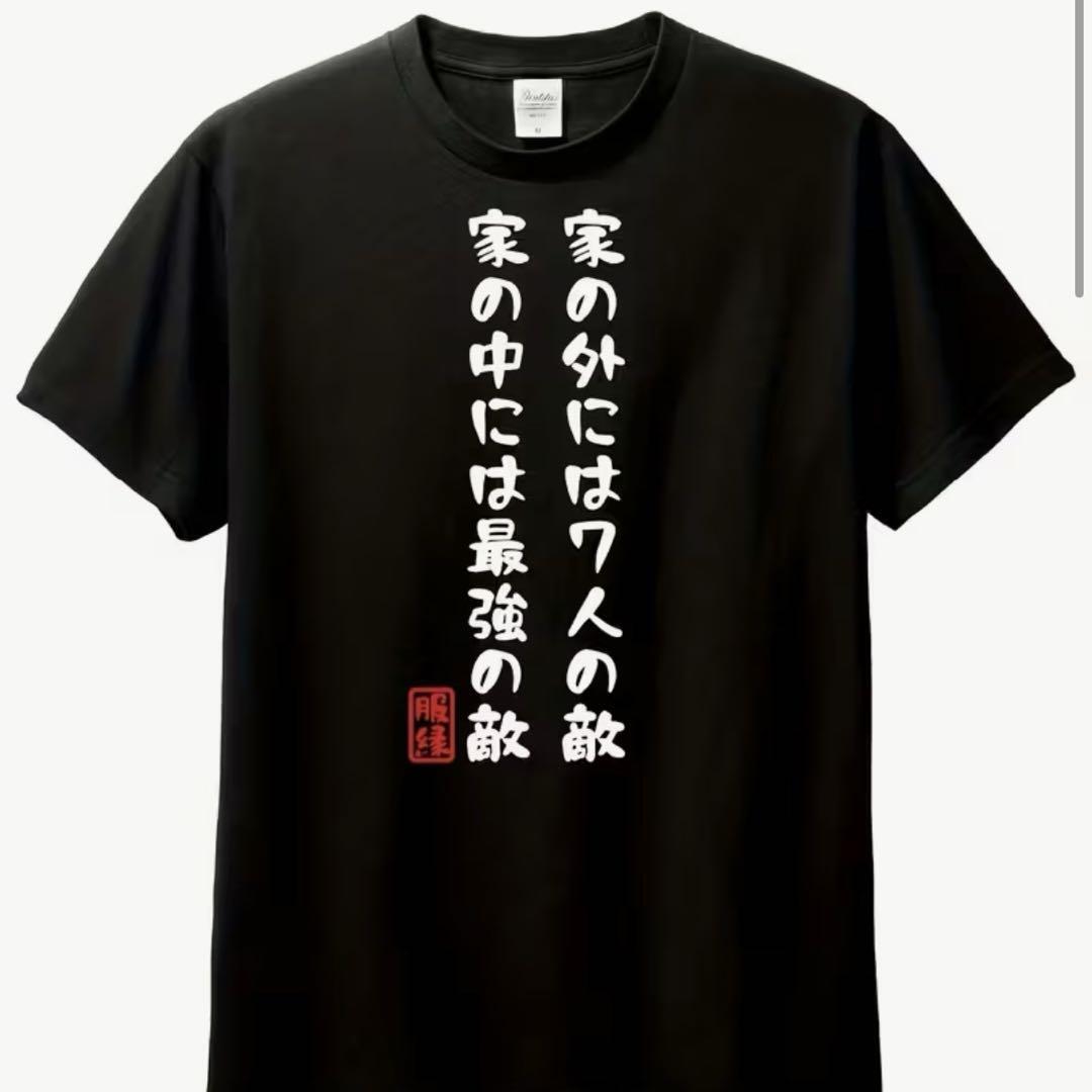 カジュアルスタイルのブラックTシャツ、100%コットン製のテキストプリントデザイン。
