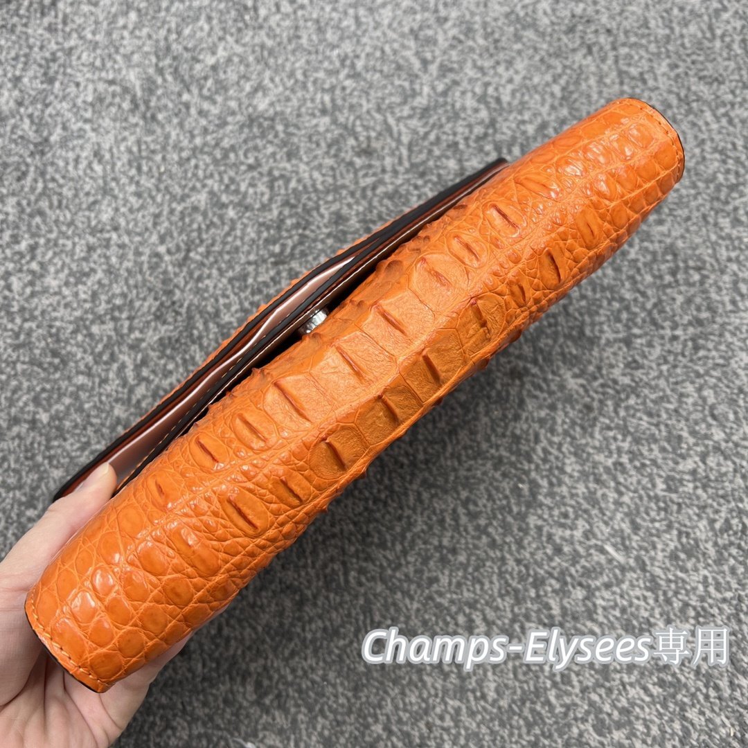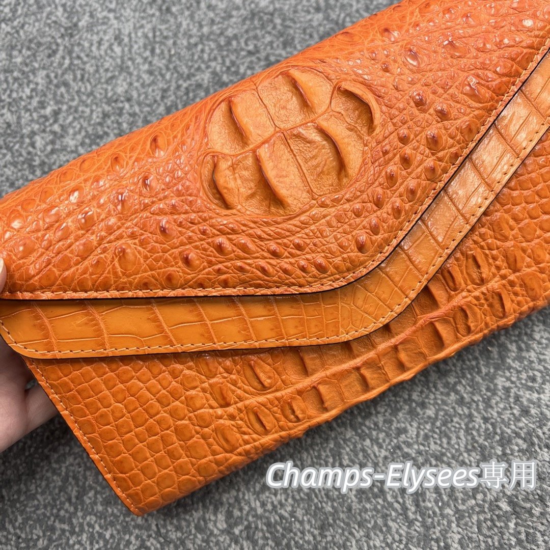 高級鰐革 特大コブ 丈夫なクロコダイルレザー レディースバッグ ショルダーストラップ2本付き 自由出かけ オレンジ