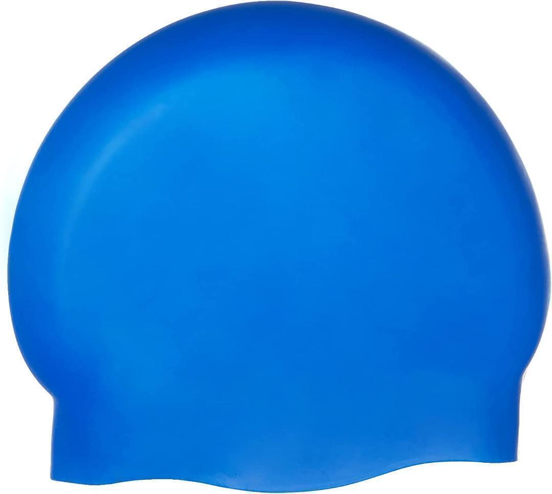 柔軟なシリコン100%製の、男女兼用スイムキャップ、ブルー。PVCフリー、ラテックスフリー。