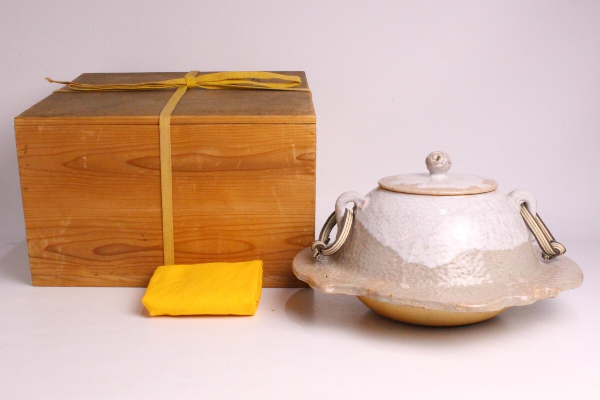 10代 坂高麗左衛門 作 佐藤栄作 蔵 萩焼 張雀 透木釜「共箱」