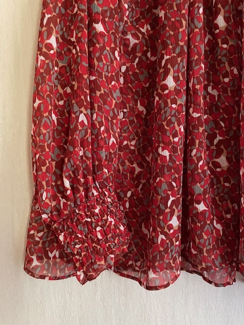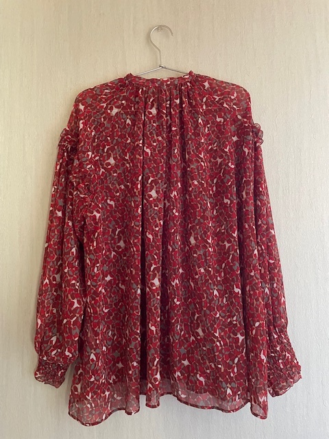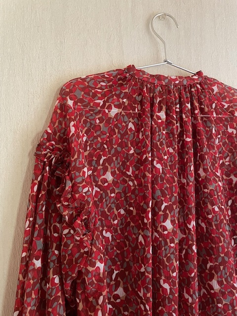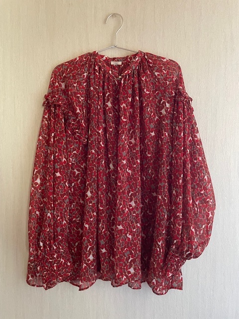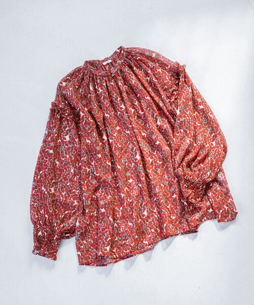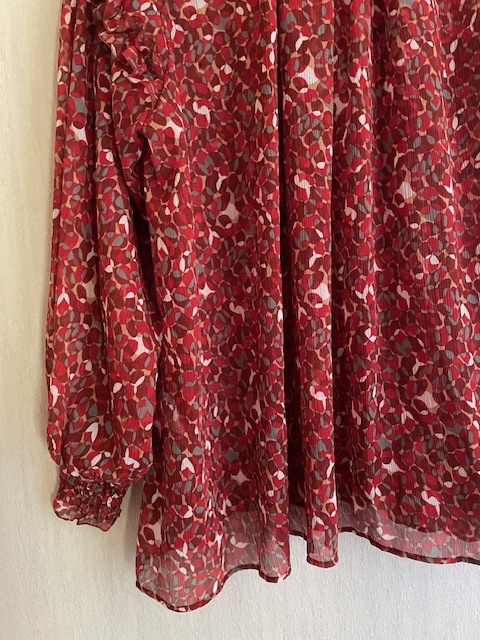 オリジナルの赤いマーブル模様が華やかなブラウス。