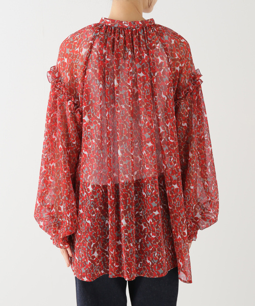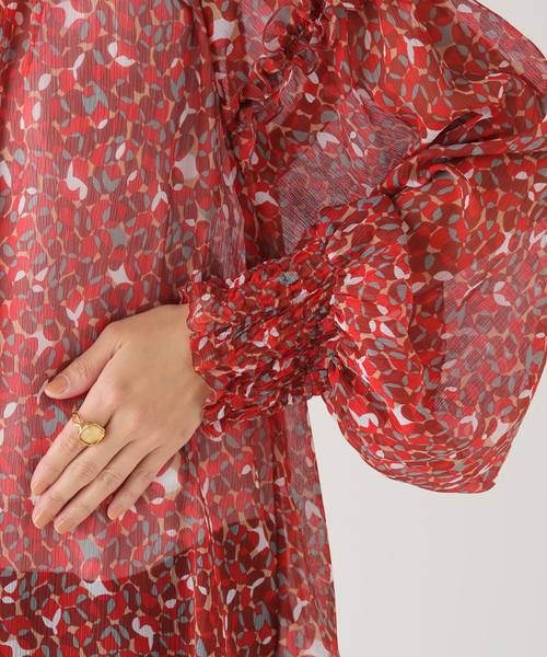薄手のシフォン生地を使用しており、袖についたフリルが新鮮なデザイン。