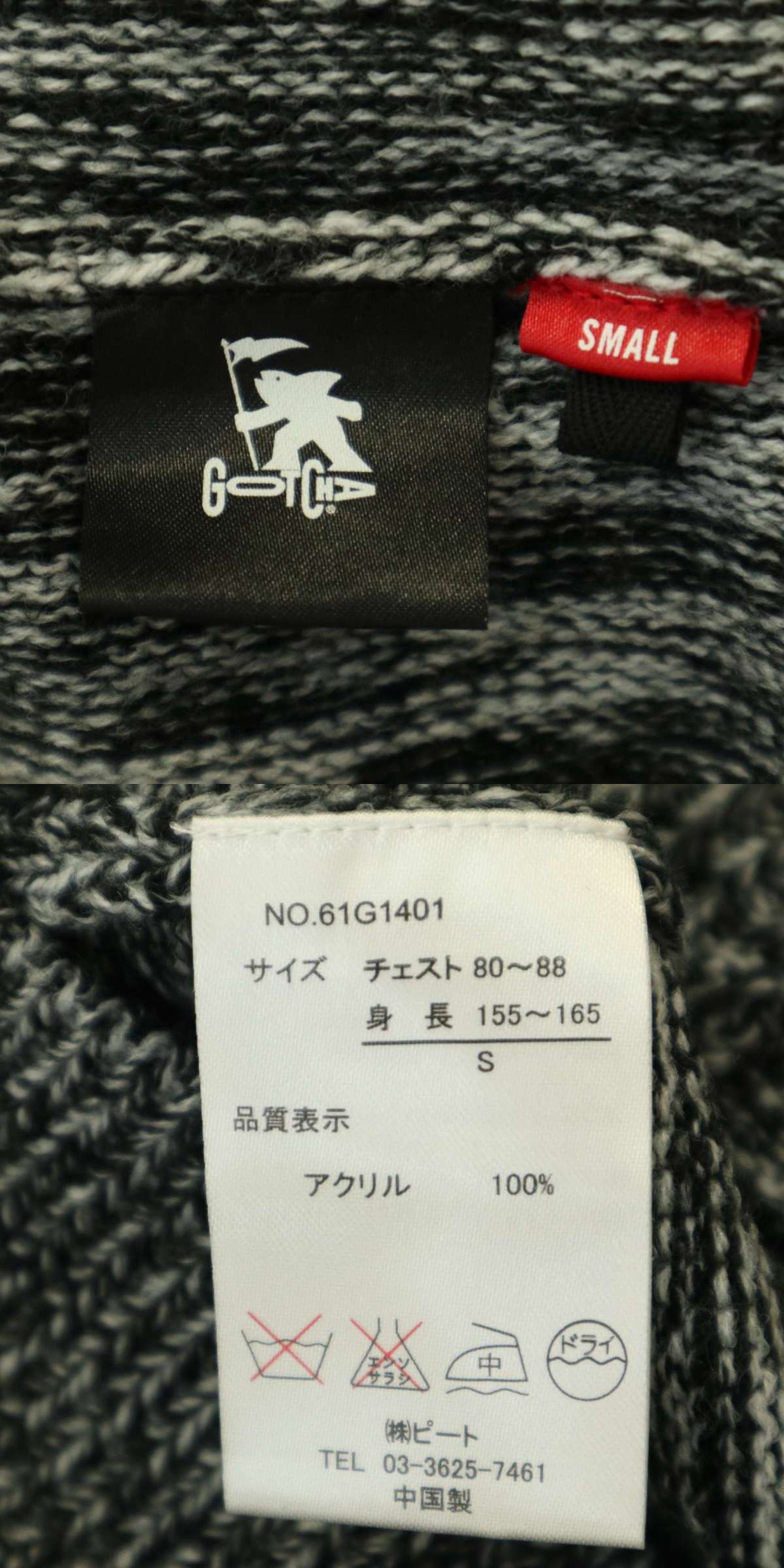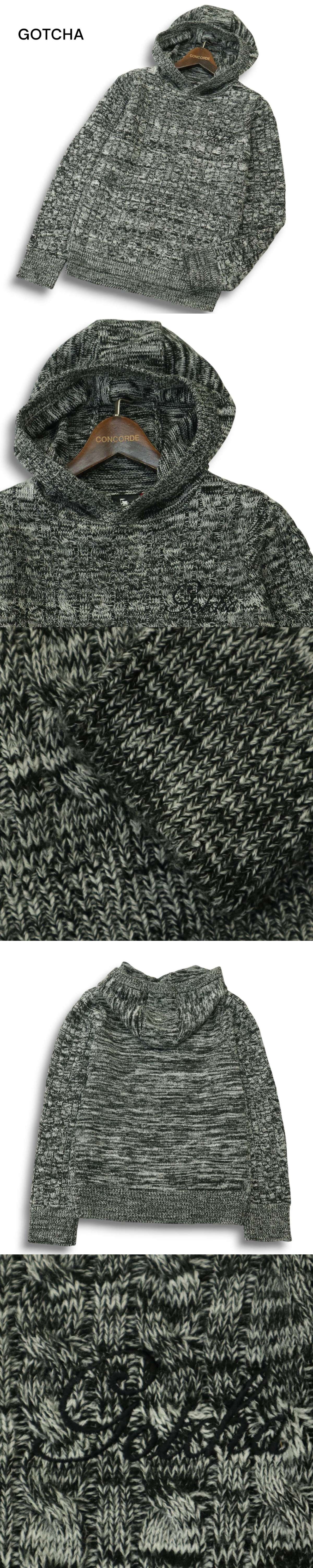 【美品】 GOTCHA ガッチャ 秋冬 ロゴ刺繍★ メランジ ケーブル ニット プルオーバー パーカー Sz.S メンズ グレー サーフ