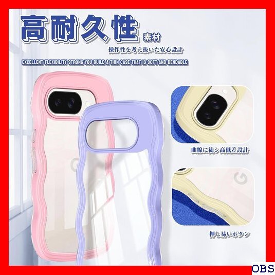 Google Pixel 9a ケース クリア おしゃれ 韓国 可愛い ピクセル9a カバー 透明 耐衝撃 軽量 ストラップホール付き ワイヤレス充電 スマホケース パープル 15