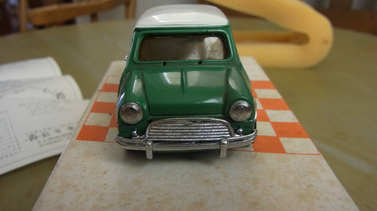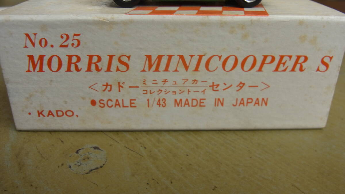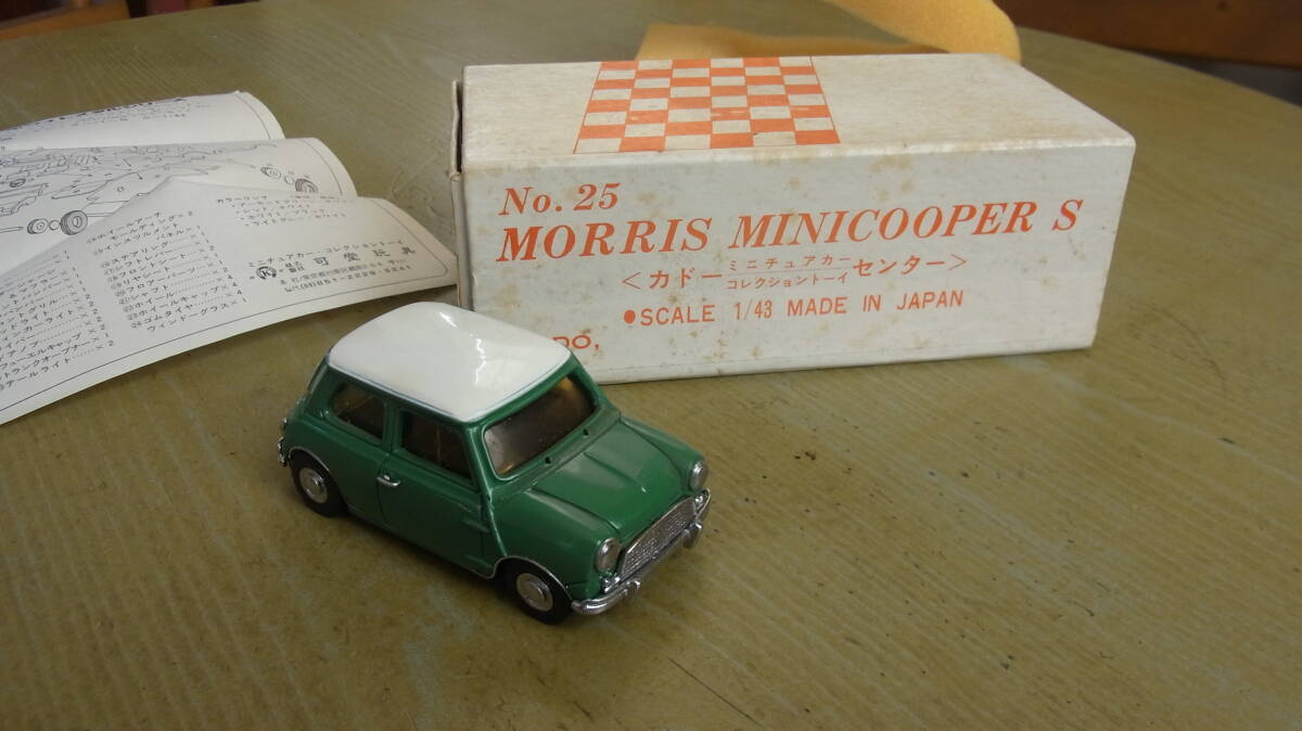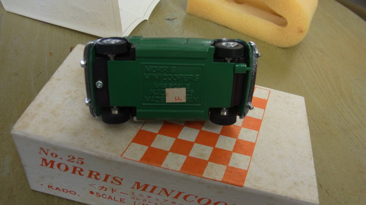 カドーモーリスミニクーパーS アーモンドグリーン ほぼ箱の中にしまわれていました。別添えのワイパーブレードは一つ欠品しています。