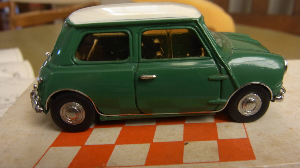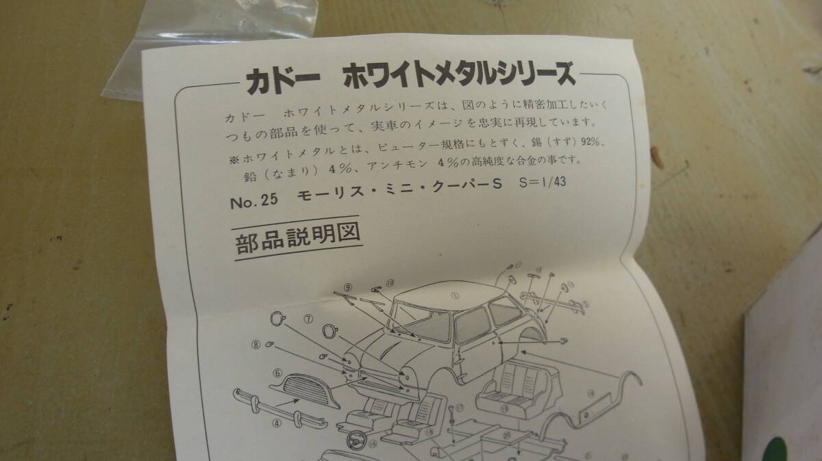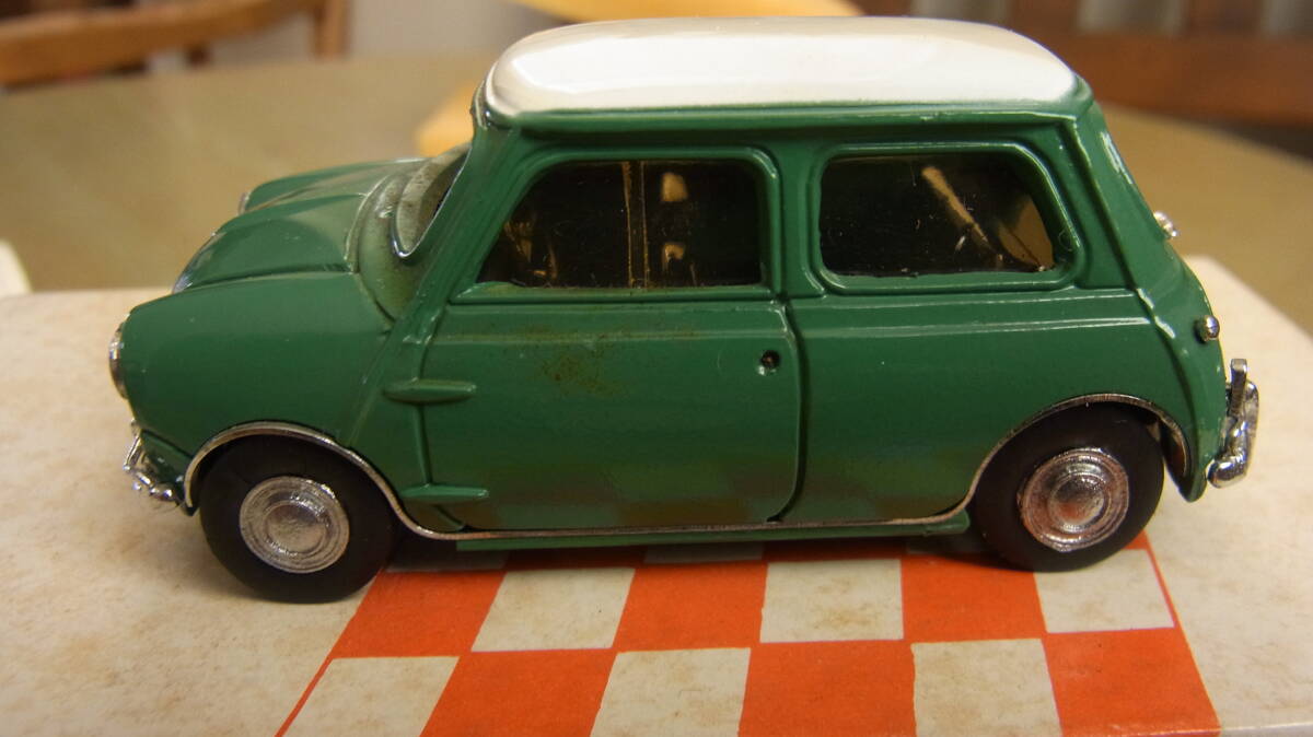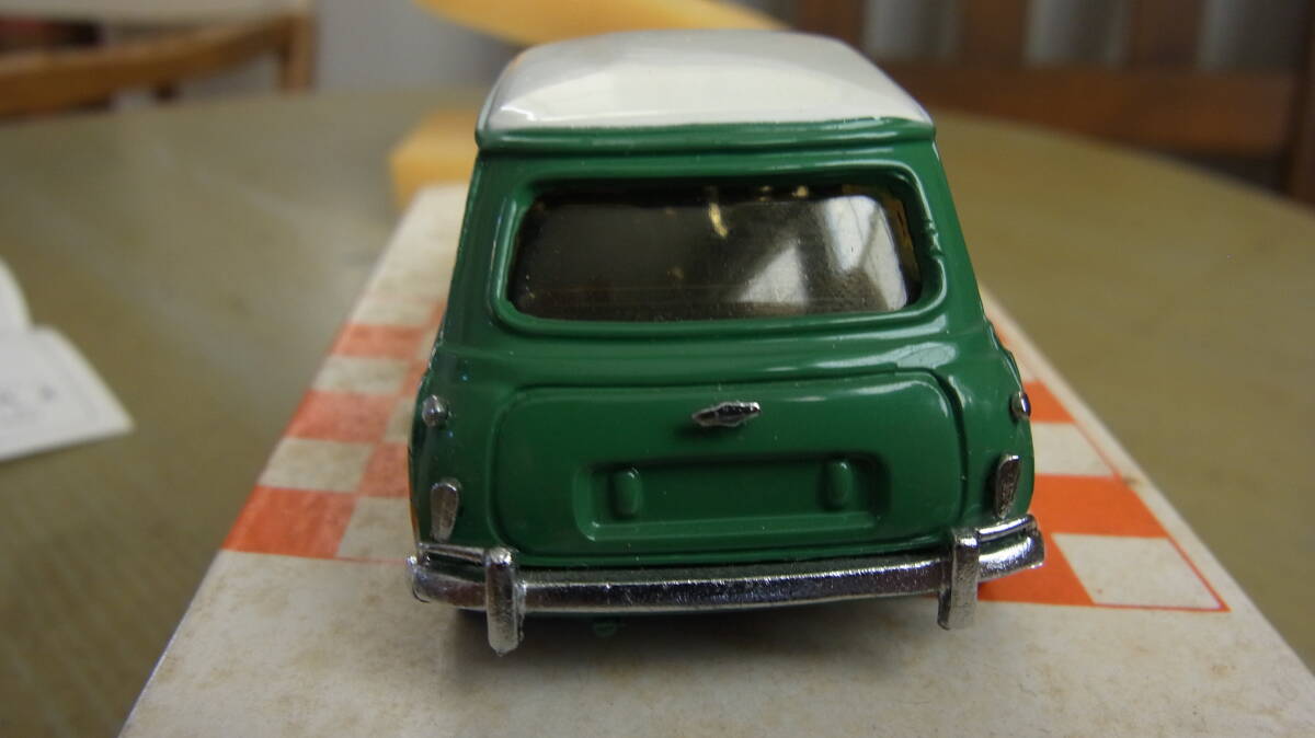 カドーモーリスミニクーパーS アーモンドグリーン ほぼ箱の中にしまわれていました。別添えのワイパーブレードは一つ欠品しています。