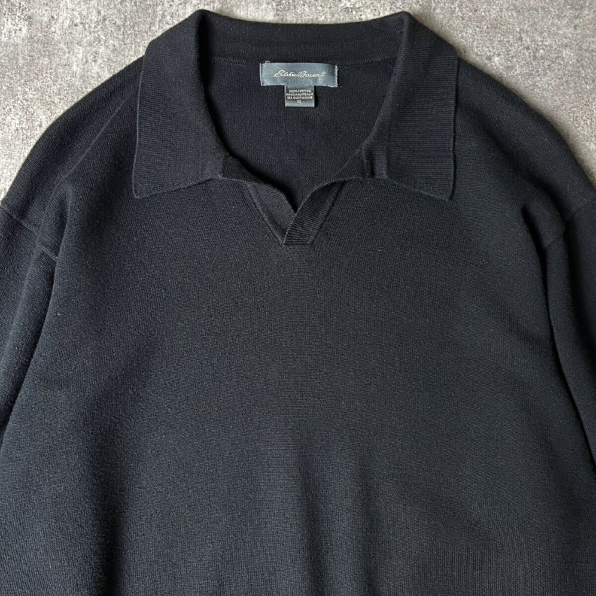 00s Eddie Bauer 無地 コットン ニット スキッパー シャツ XL / 00年代 オールド エディーバウアー ブラック セーター プルオーバー