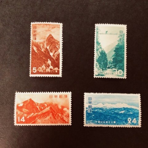 第1次国立公園 中部山岳 4種完揃 未使用 裏のりあり ヒンジ跡なし