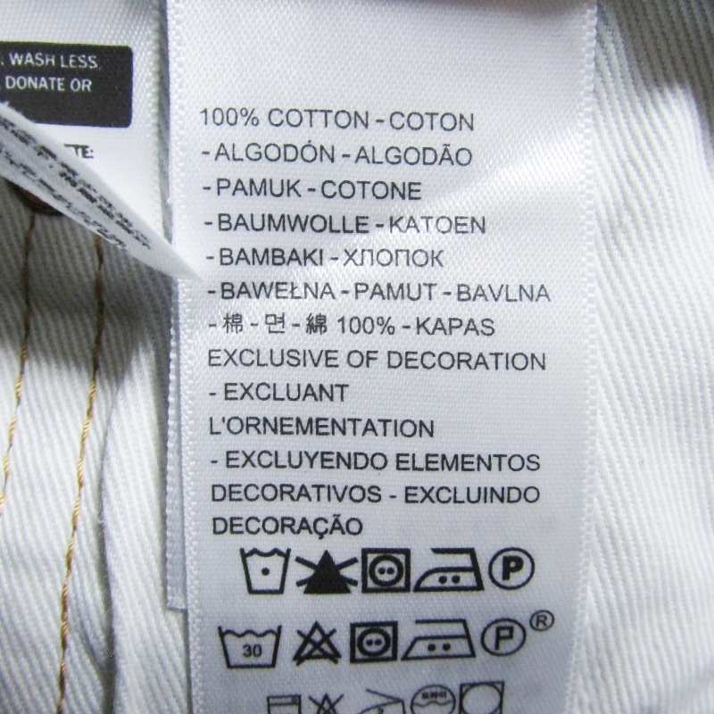 | SIZE | 表記SIZE:33 ウエスト:約46cm 股上:約28.5cm 股下:約80cm ワタリ:約30cm 裾幅:約21cm 平置き採寸での計測となるため、公式サイトの計測と多少のズレが生じることもございますのでご了承ください。 計測には細心の注意を払っておりますが多少の誤差はご了承下さい。 |