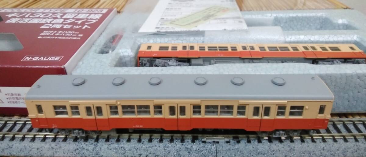 | 商品説明 | ▼ROUNDHOUSE-10-923▼キハ30/久留里線「復活国鉄色」タイプ(ツートンカラー)/M付き2両セット/KATO/キハ35系/中古品です。 (ラウンドハウス=カトー-10-923「キハ30 久留里線 復活国鉄色タイプ 2両セット」) ◎国鉄・JRの通勤形気動車、キハ30の「復活国鉄色」タイプ(ツートン)の2連になります。こちらは千葉県の久留里線で最後まで活躍したキハ35系のグループでした。 キハ30-98(M車)+キハ30-62の2両です。 *連結器は初期から、カトーナックルカプラーです。交換用のアーノルドカプラーも付いてます。 動力チェック済、走行に問題はありません。 ヘッド&テールライト(ON/OFFスイッチ付き)の点灯確認済。 付属品(シール・パーツ)は初期のまま未使用です。 ▼走行履歴の少ない模型ですが製品自体はそれなりに古いものです、そのあたりのご理解をお願いいたします。 *このキハ30は、試走程度の美品です。 ★レターパック発送の場合はプチプチ補強、ゆうパック発送の場合はダンボール箱等に梱包いたします。  |