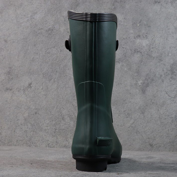 かかと部のキックバックは脱ぐときに片足をひっかけて脱ぎやすくする役割の実用性を考慮したラバーブーツです。