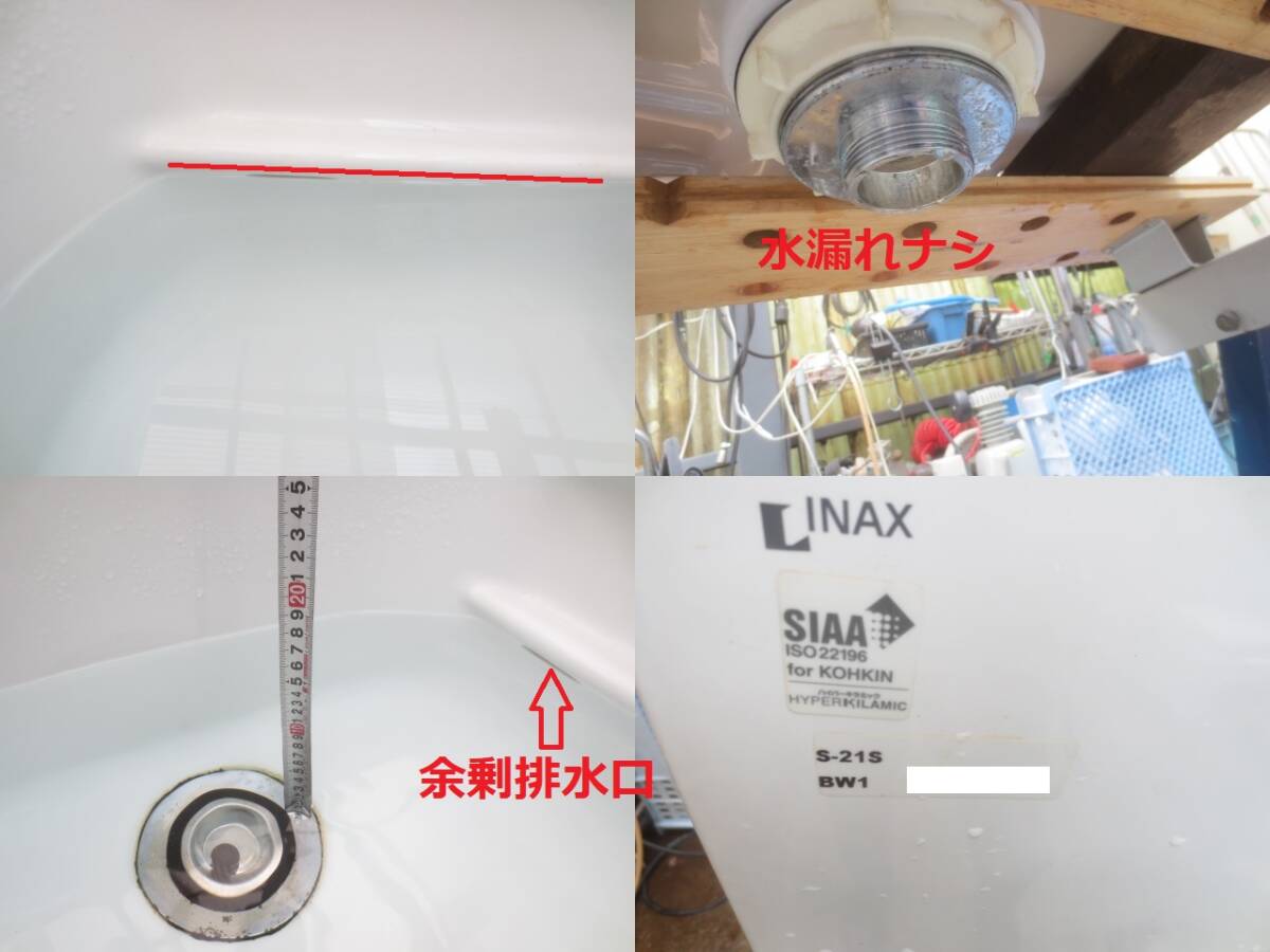 | 商品説明 | 外形寸法: W500 × D450 × H1880(mm) 「トラップ含む」 「内寸」 W404×D367×H300(mm) 商品仕様 : 材 質 : 陶器製 容 量 : 19L Sトラップ : SF-21SAM 質 量 : 26.0Kg(トラップ含む) 「付属品」 止水栓 排水Sトラップ(床排水) 洗剤希釈装置(ジャストミックス) メーカー : リクシル 多目的流し「S-21S BW1」 状 態 : 外観には、大きな「ダメージ」は 有りません。 止水栓にて「水」は漏れません。 多少の「水垢」が残ってます。 *取説は有りません *壁取付「金具」は有りません。 *現状での「お渡し」となります。 中古品ですので、多少の傷、 落ちなかった汚れ、使用感などがございます。 *商品は木製パレット梱包になる場合も御座います。 |