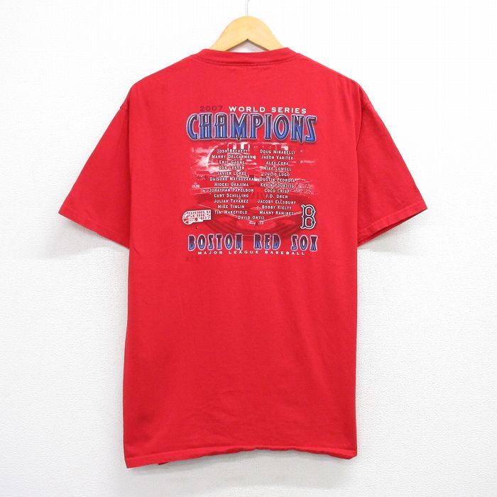 【商品名】 L★古着 半袖 ビンテージ Tシャツ メンズ 00年代 00s MLB ボストンレッドソックス ジョシュベケット エリックガニエ コットン クルーネック 赤 メジャーリーグ ベースボール 野球