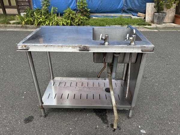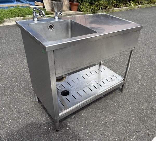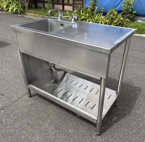 §【1槽シンク 流し台 蛇口付き 間口1000×奥行565×高さ870mm 業務/厨房用品 店舗用品キッチン用品 】 Q08286