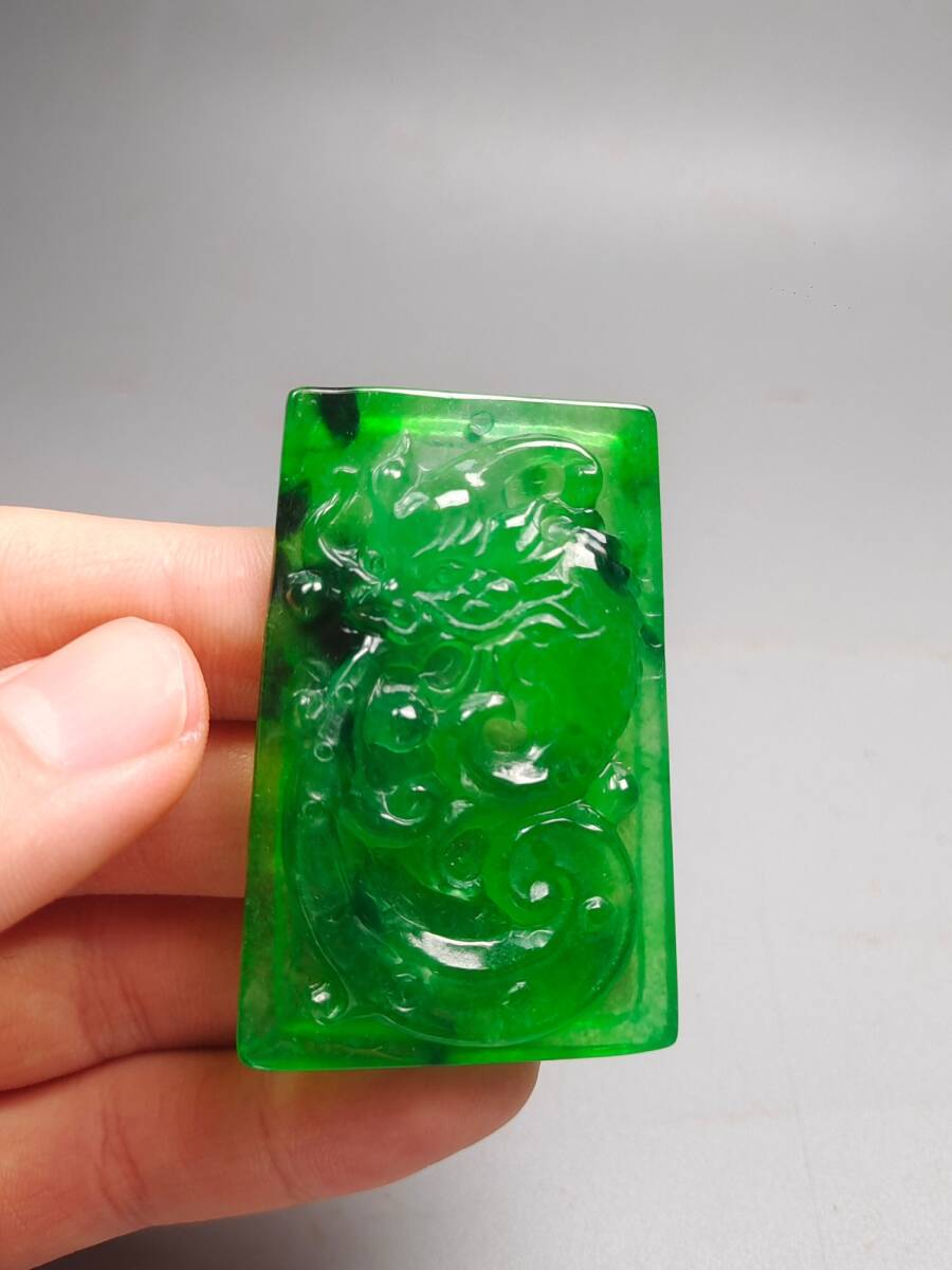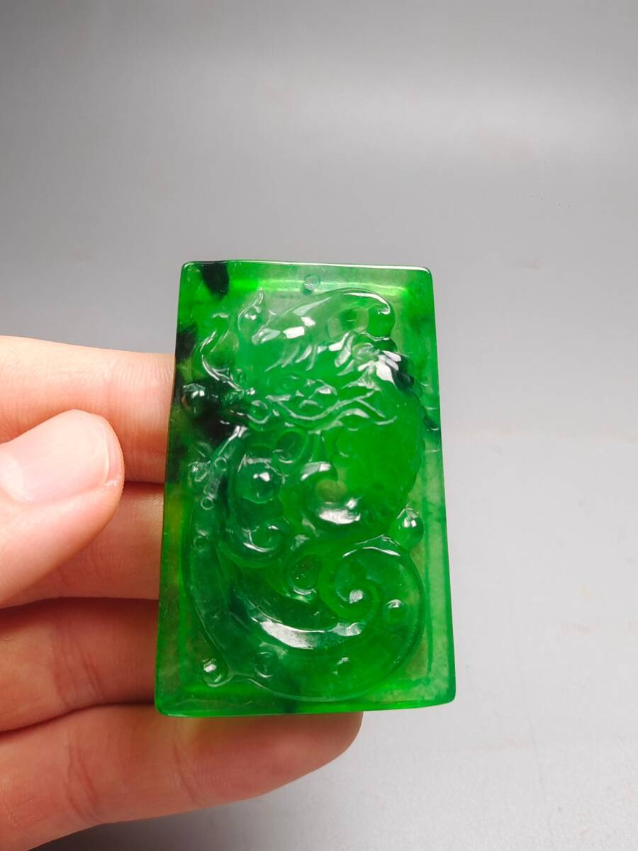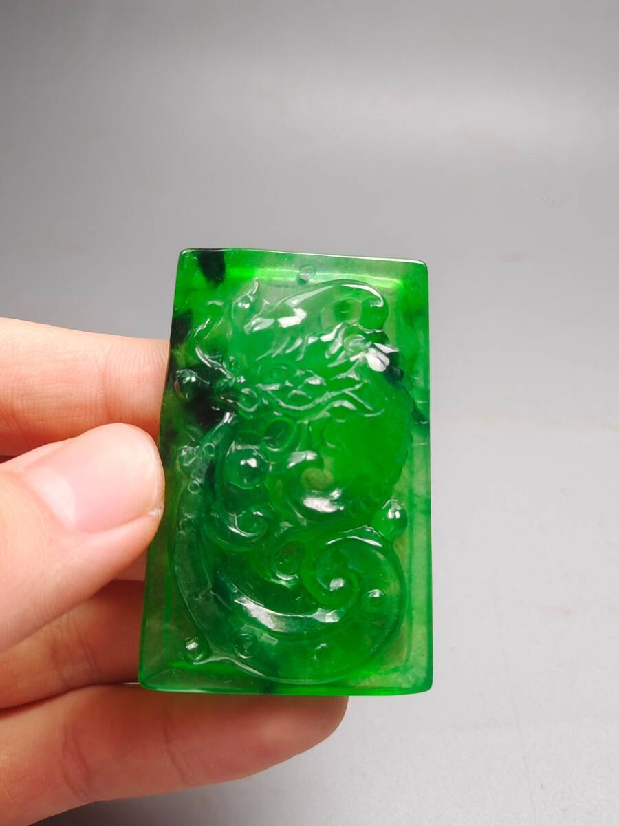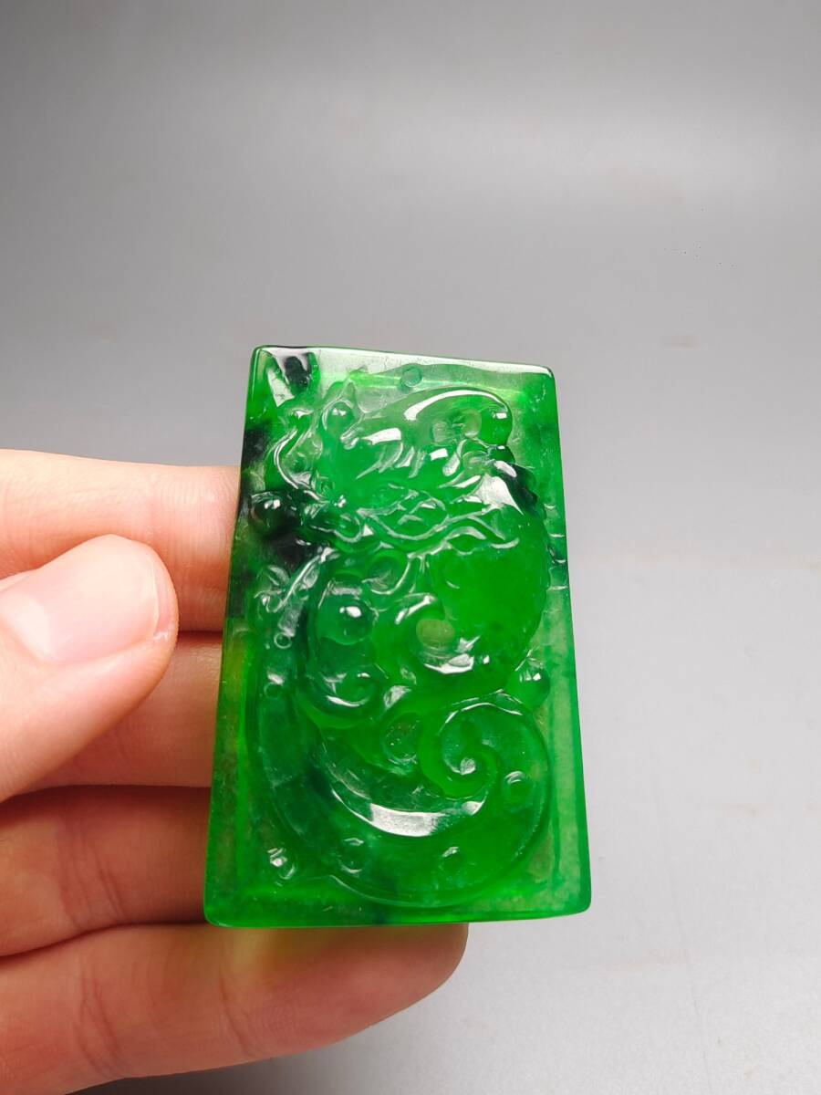『清・翡翠細密彫・沁色自然・龍行天下ペンダント・根付・裝身具』極細工 置物 古賞物 中国古玩 中国古美術