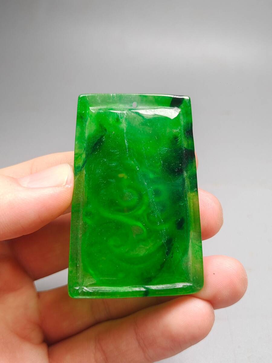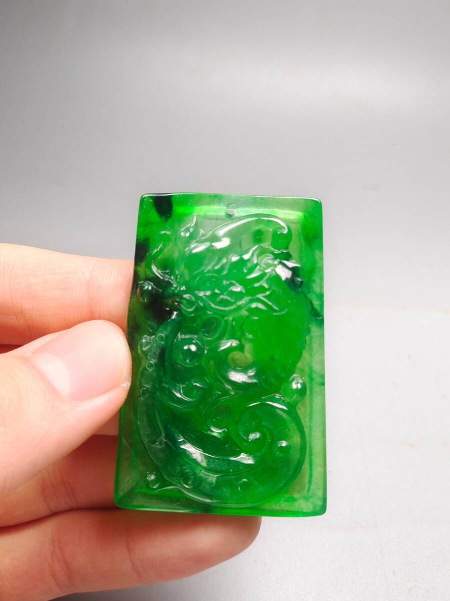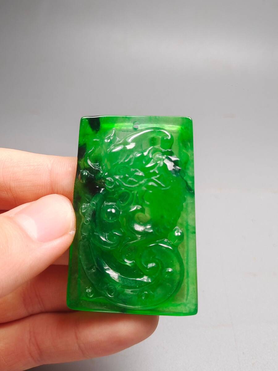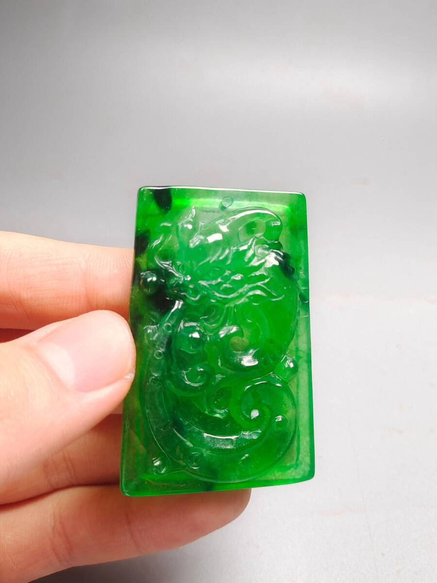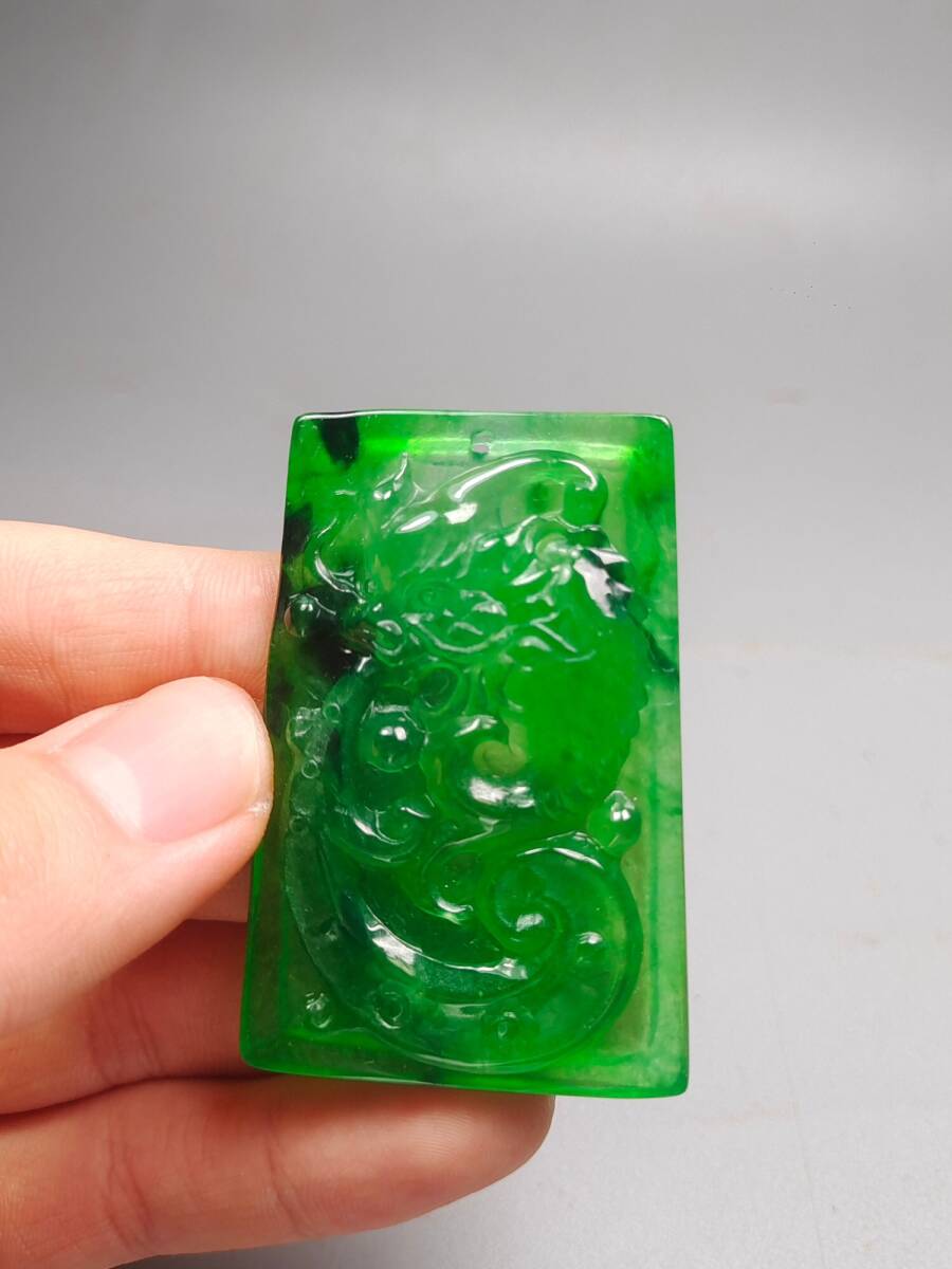 『清・翡翠細密彫・沁色自然・龍行天下ペンダント・根付・裝身具』極細工 置物 古賞物 中国古玩 中国古美術