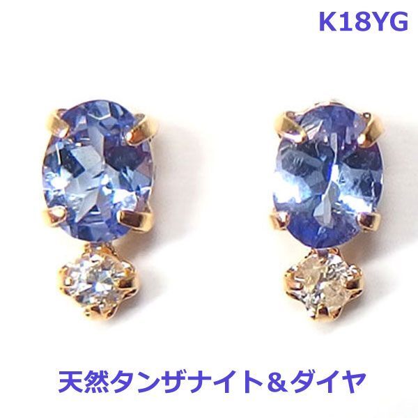 【送料無料】K18YG上質タンザナイト&ダイヤスタッドピアス■2261