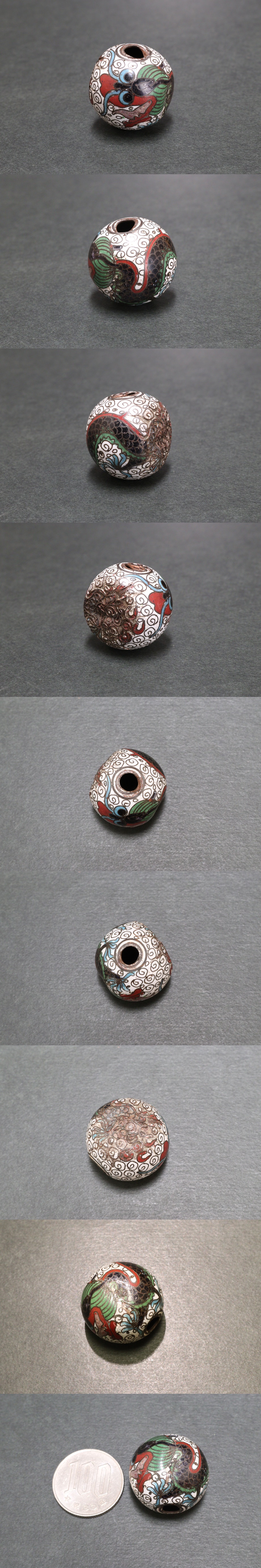 【P 提物 七宝焼 雲龍図 緒締玉 根付 重量6.7g】です。