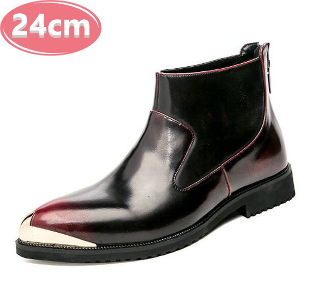 メンズ ビジネス PUレザー シューズ レッド 24.0㎝ 革靴 靴 カジュアル 屈曲性 通勤 軽量 インポート品【n160】