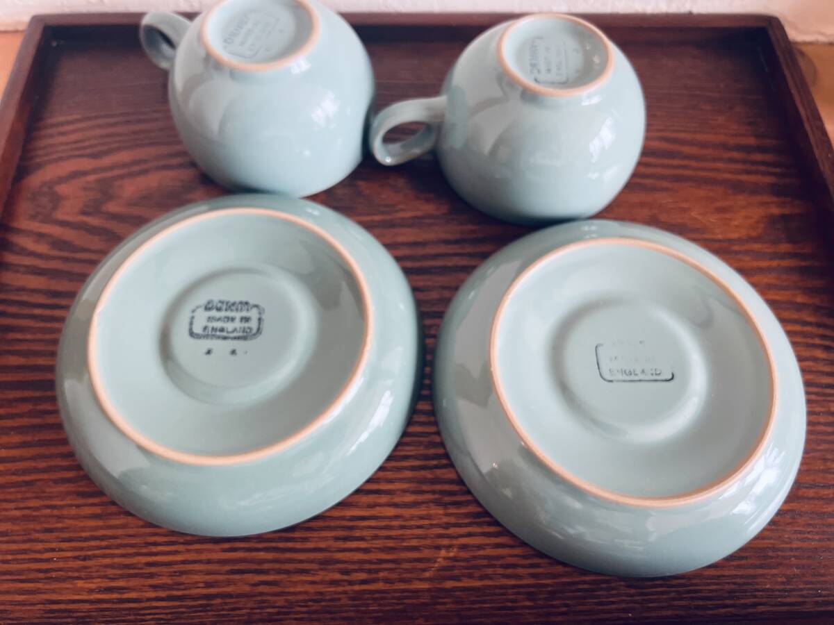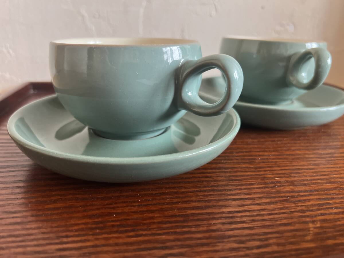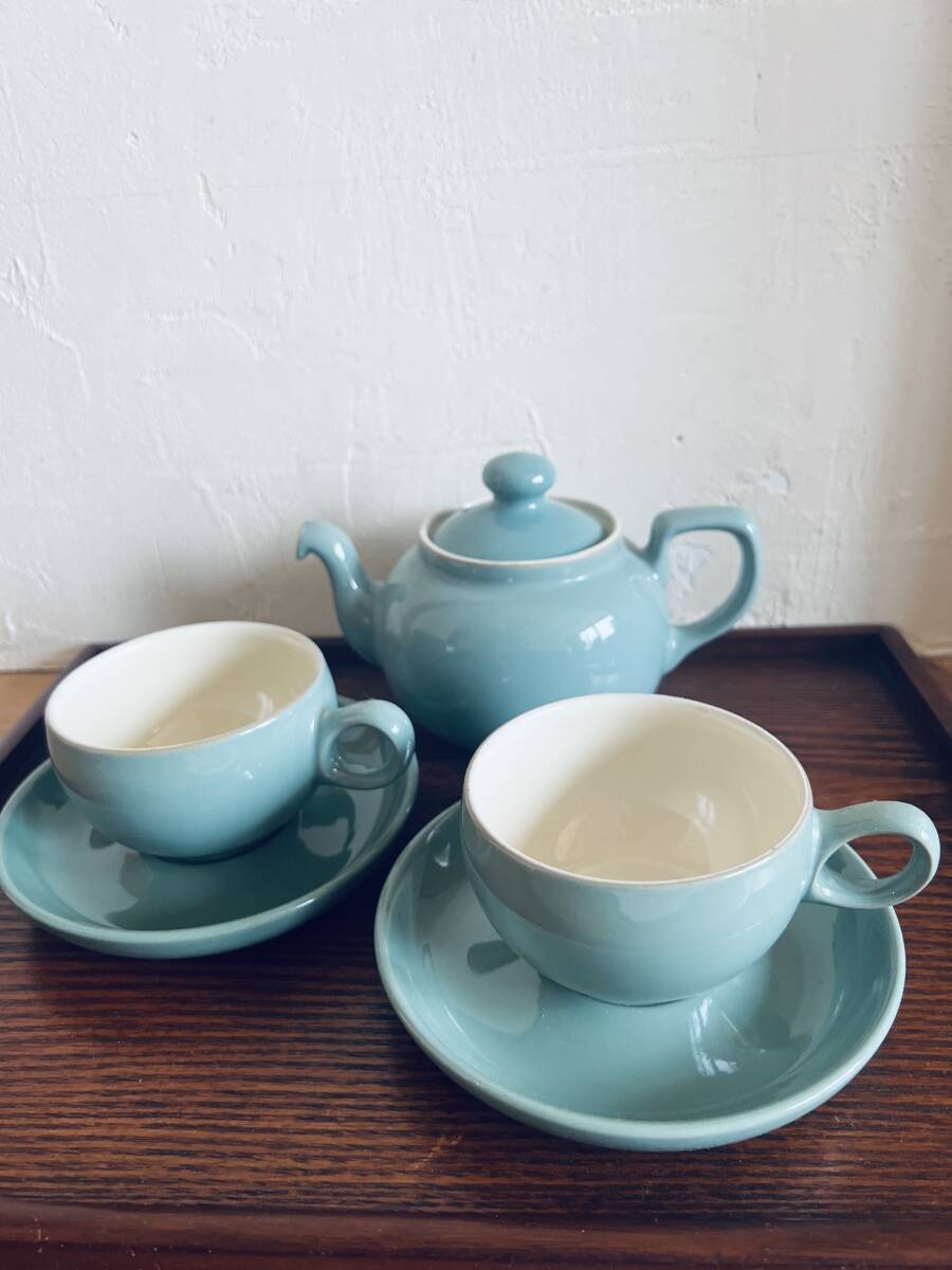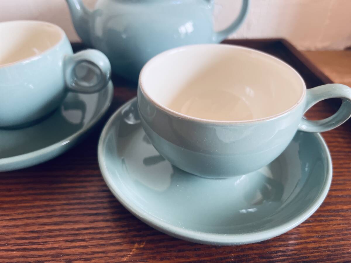 DENBY マナーグリーン ティーポット、カップ&ソーサー2客セット デンビー ミッドセンチュリー/337-1