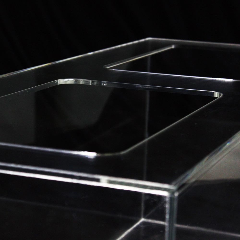 ・ 透明感の高い国産キャストアクリル使用。底面は板厚が同様で耐久性あり。フランジは板厚15mmで継ぎ目の無い一枚もの。美しい職人技でクリアな水中世界を観賞。傷がついても研磨補修が可能。専用研磨剤は別売り。