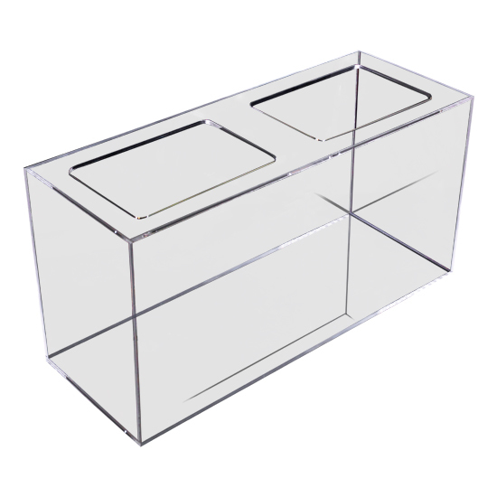 ・ 水族館も利用している耐衝撃性の高いアクリル水槽。お家に水槽を設置しても安全・安心。軽量のため大型水槽でも搬入・設置作業が比較的容易。保温性が高いので省エネ。