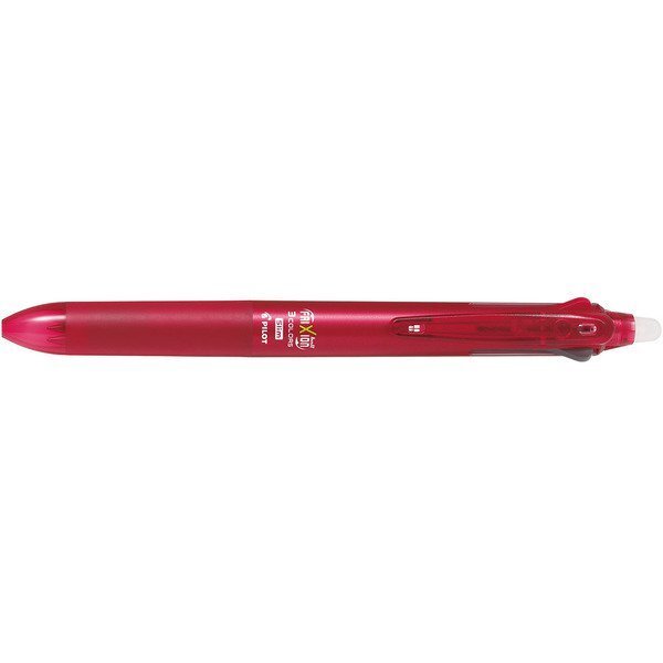 ・「フ リクションボール3 スリム」は、1本で3色を使い分けでき、何度でも書き消し可能な利便性の高い3色ボールペンです。インキ色は黒・赤・青のベーシック な3色。ペン先は0.38mmの超極細と0.5mmの極細タイプの2種類。手帳や資料などの細かい箇所への書き込みに適しています。またクリップは当社オリジナルのリフトクリップを採用。厚いものでもしっかり挟め、10万回はさんでもこわれません(当社試験データによる)。