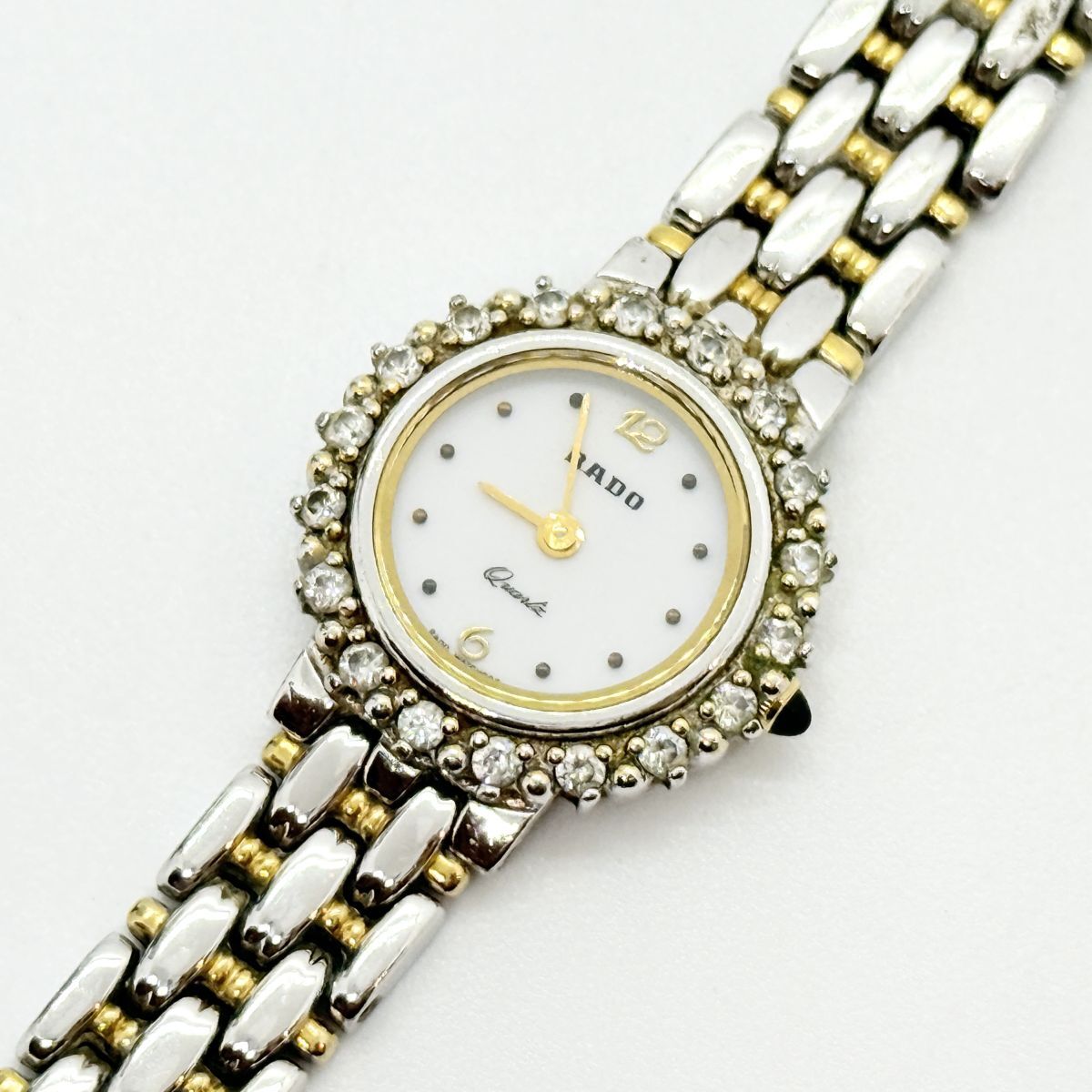 T6794 激安セール RADO ラドー 133.9702.2 ストーンベゼル ホワイトシェル クオーツ シルバー ゴールド 腕時計 レディース