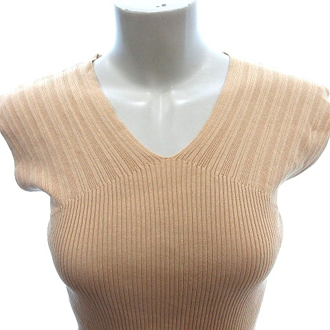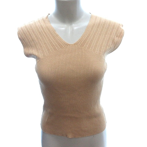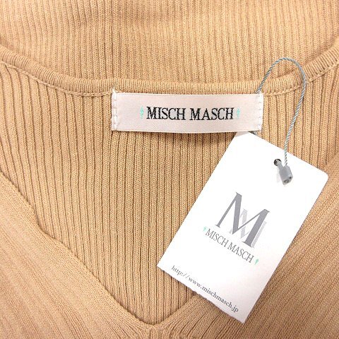 未使用品 ミッシュマッシュ MISCH MASCH ニット カットソー Vネック 切替 リブ フレンチスリーブ 2 M ベージュ /AU レディース