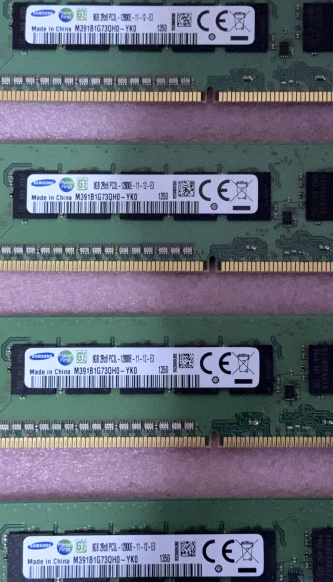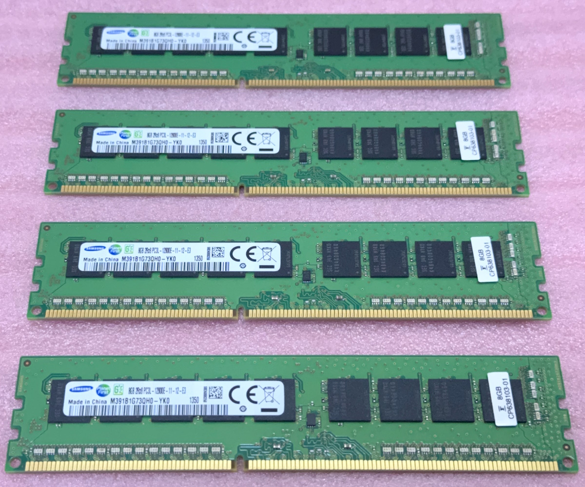 ∑Samsung M391B1G73QH0-YK0 4枚セット - PC3L-12800E/DDR3L-1600 ECC Unbuffered 240Pin DDR3 UDIMM 32GB(8GB x4) 動作品