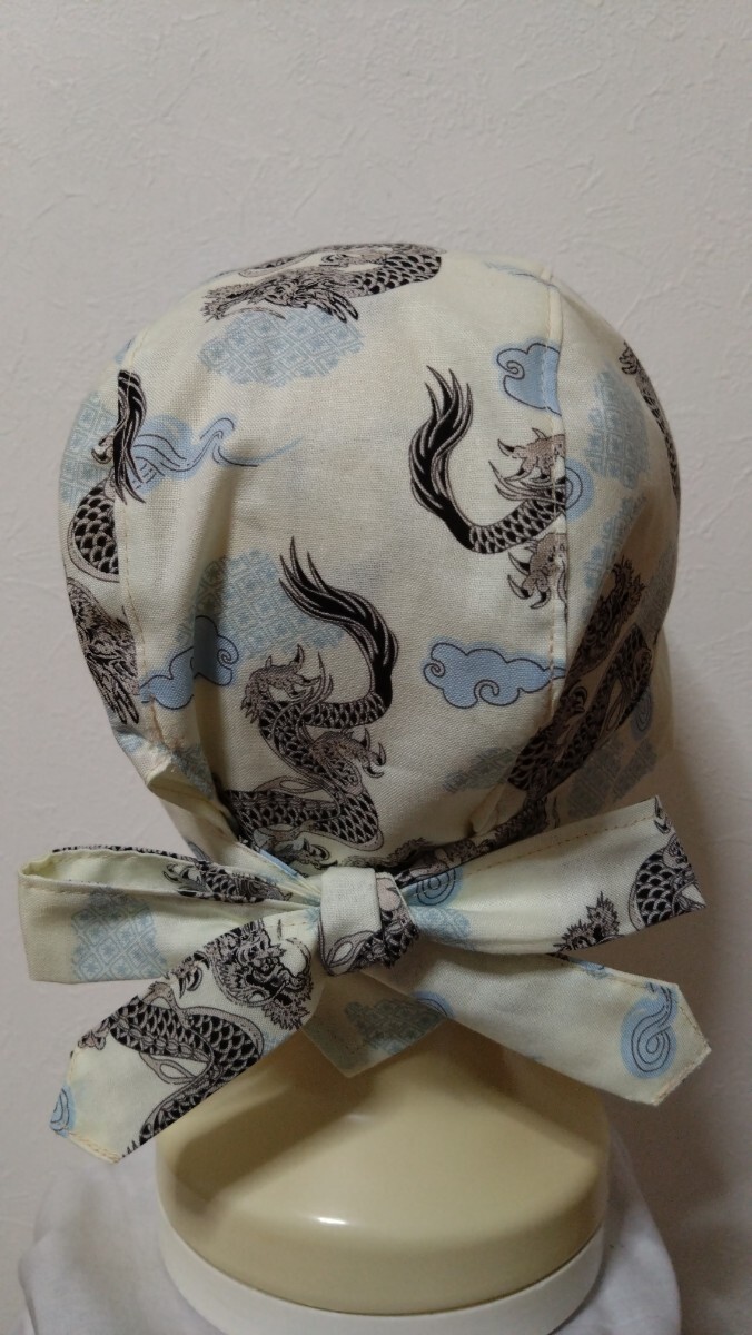 短★バンダナキャップ★ハンドメイド 和柄 竜と雲 白
