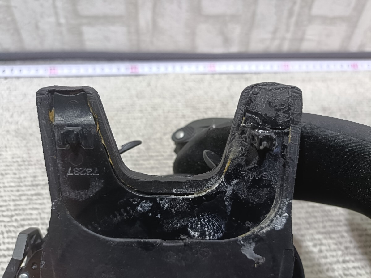 中古ですので相応の使用感あり、SALOMONのバインによくある状態で、フットの裏側に割れあります。爪の部分には至っていませんので、浮いたりすることはありません。フット部分を開ける際はマイナスドライバーなどを使った方が開けやすいです。状態については一応画像参照下さい。発送はヤマト100サイズになります。