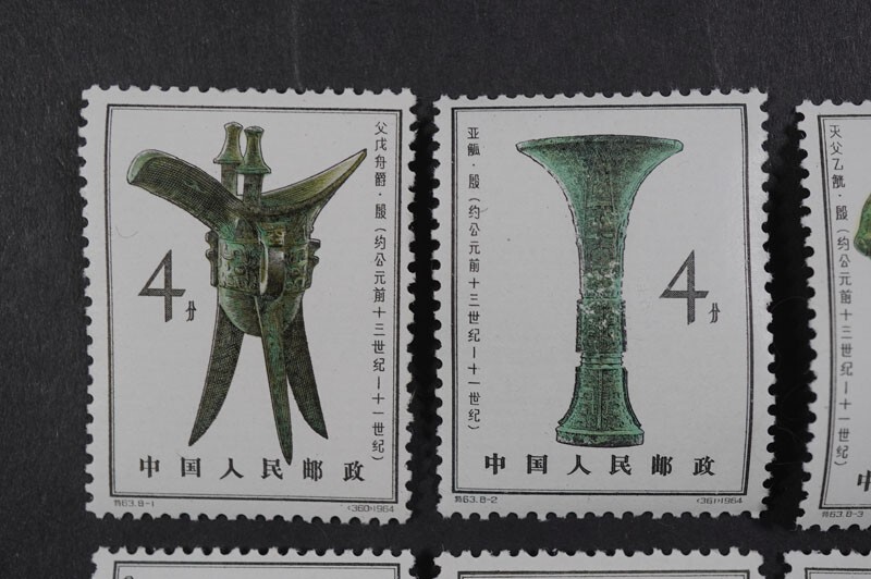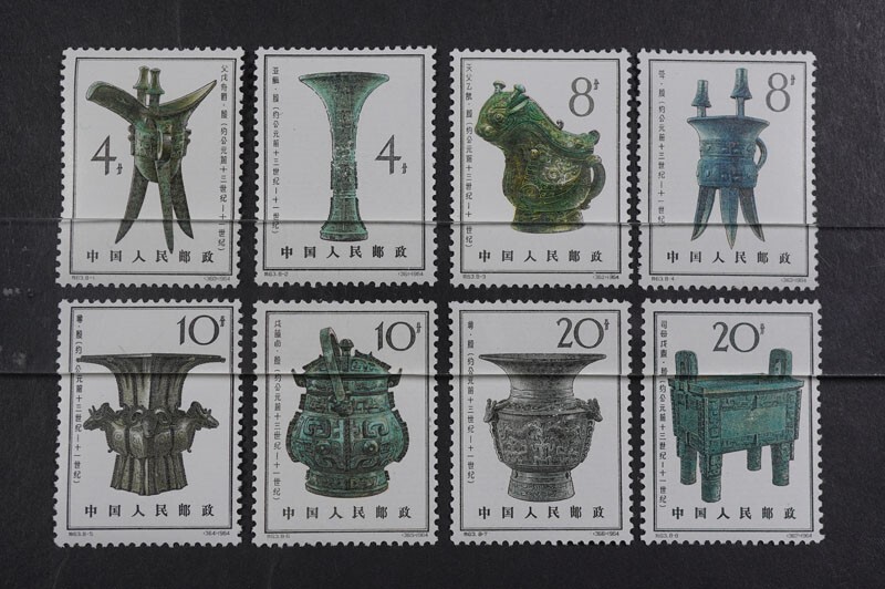 (97)コレクター放出品!中国切手 1964年 特63 殷代の青銅器 8種完 未使用 極美品 ヒンジ跡なしNH 裏糊つや大変良好 4分8分10分20分
