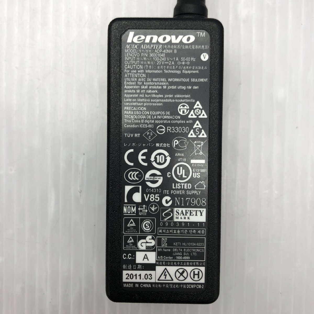 | 商品と付属品について | 型番:PA-1400-12・ADP-40NH B (上記の内の型番商品となります) 個数:7個 付属ケーブル:無し 出力:100V?240V 入力:20V 2.0A ※簡易清掃のみとなっております。傷や汚れ等はございますのでご了承ください。 ※商品状態につきましては、錆・通常使用に問題の無い被膜破れがある場合がございます。 ※適応機種につきましてお客様にてご確認お願い致します。 ※動作不良や充電不可などの初期不良を除き、お客様のご都合による返品はご遠慮いただいております。 |