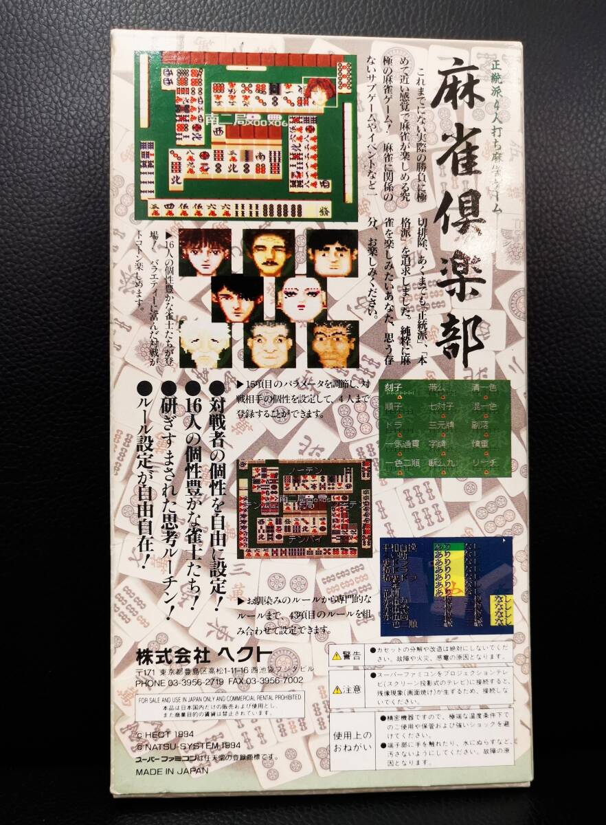 ★☆SFC スーパーファミコン ソフト 正統派4人打ち麻雀ゲーム 麻雀倶楽部 箱・取説付き 動作未確認 現状品☆★