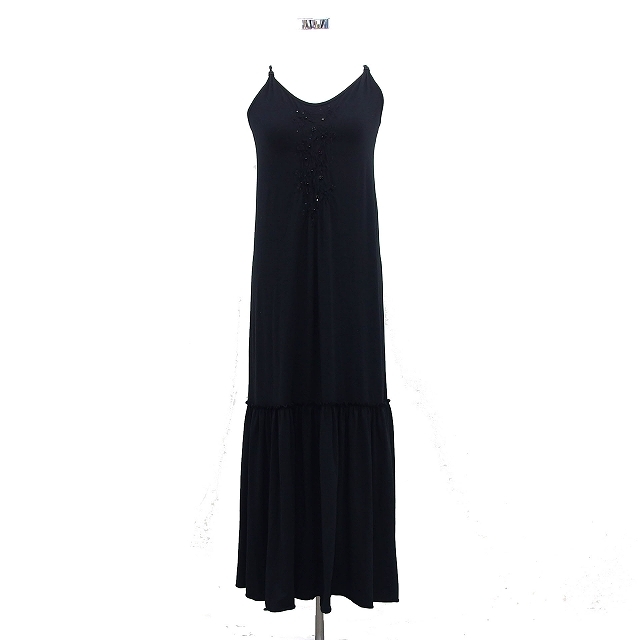 ソブ sov. ダブスタ マーメイド キャミワンピース マキシ フレア コサージュ ギャザー F 黒 ブラック /NT17 レディース