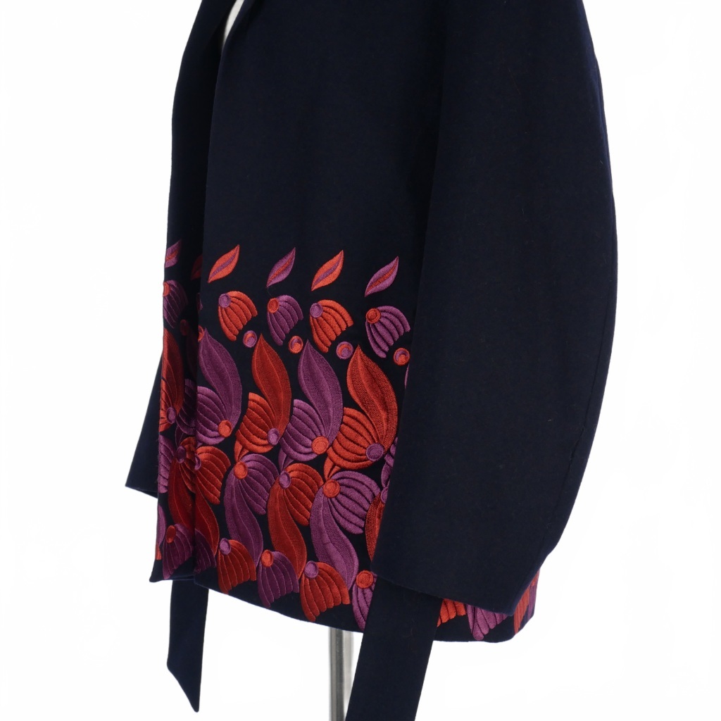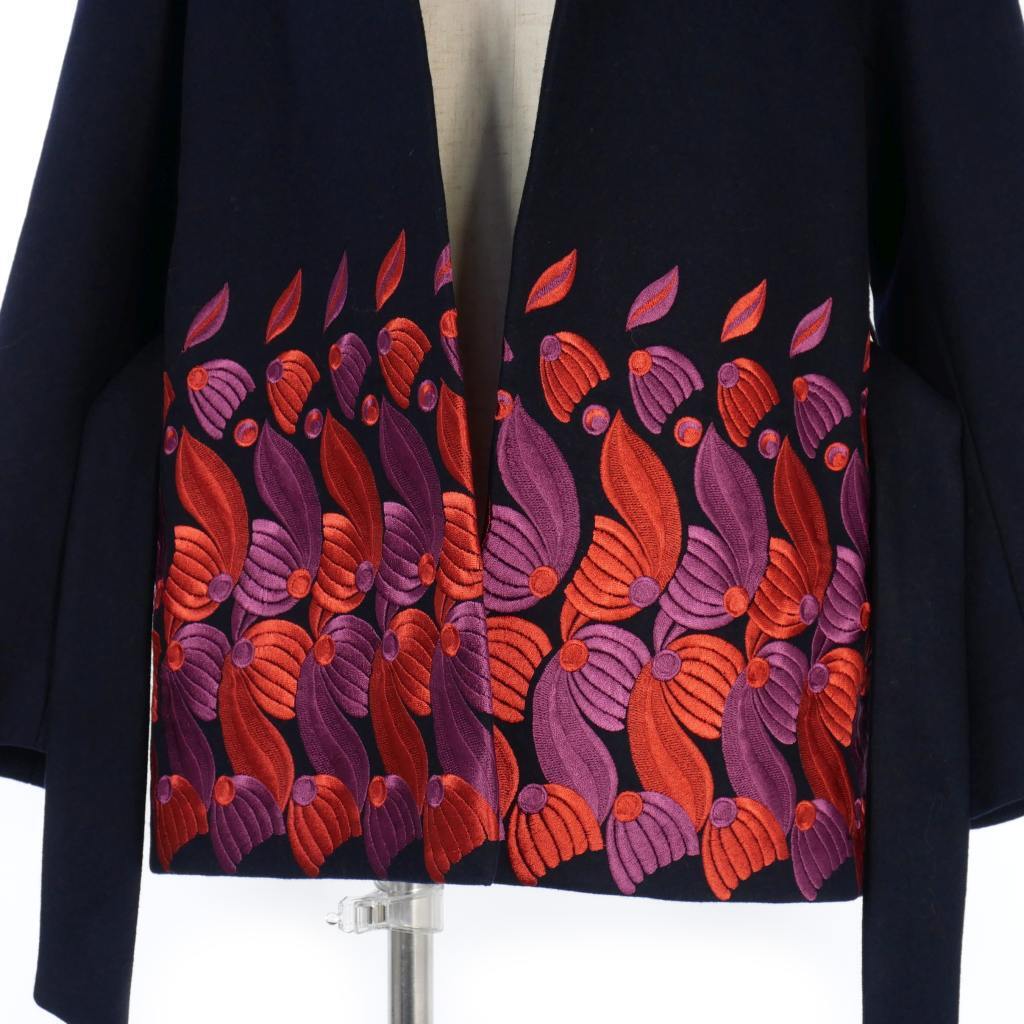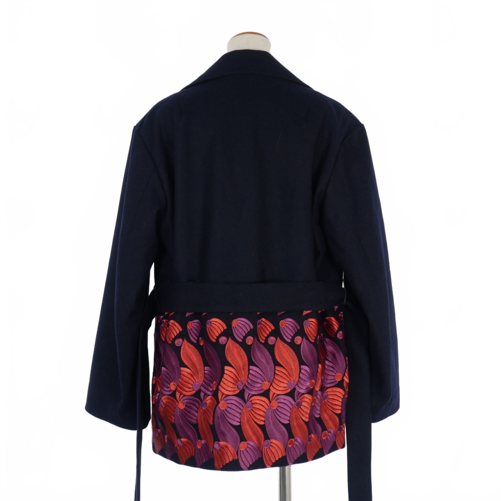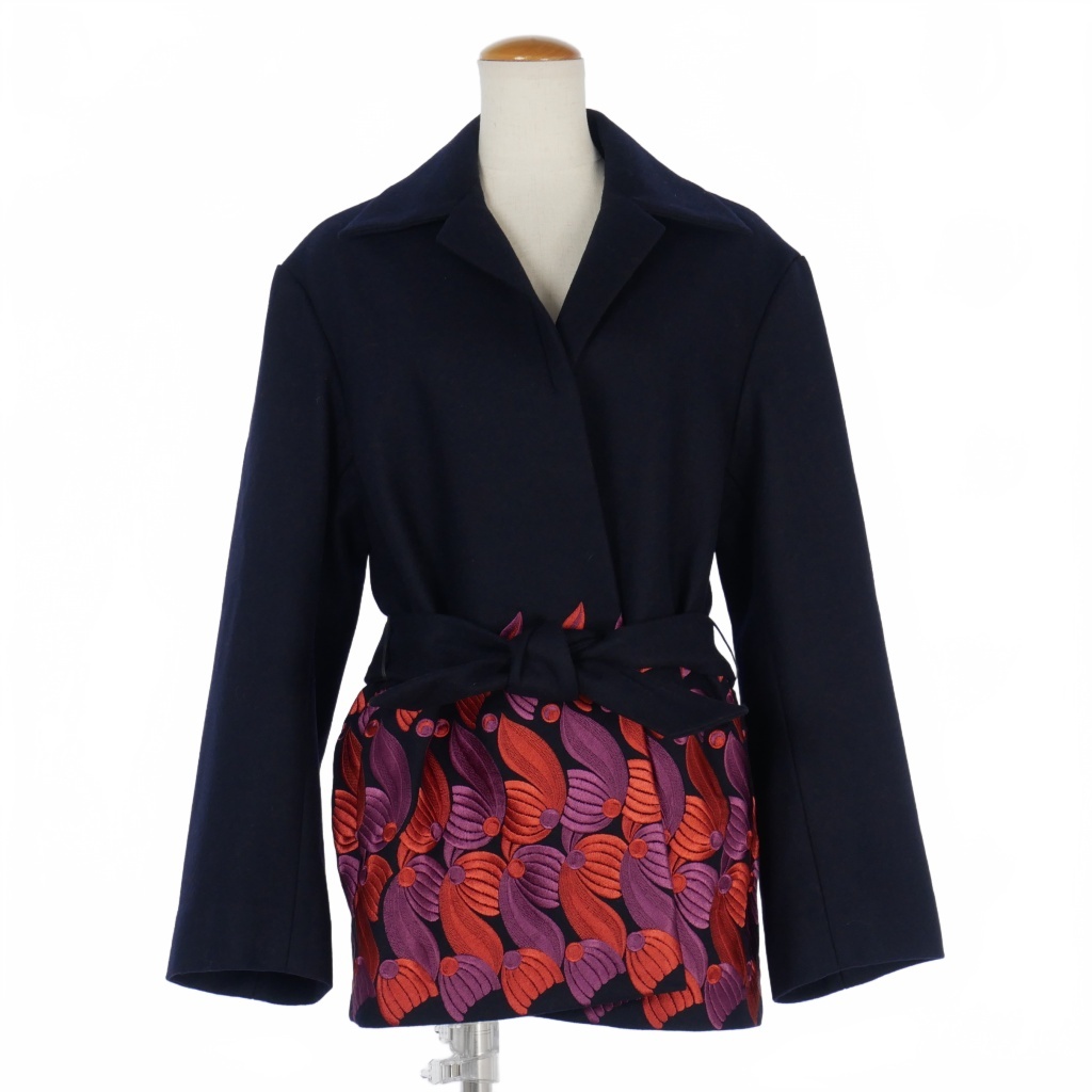 ドリスヴァンノッテン DRIES VAN NOTEN 19AW 柄切替 刺繍 ジャケット ウール ウエストベルト 36 黒 ブラック レディース