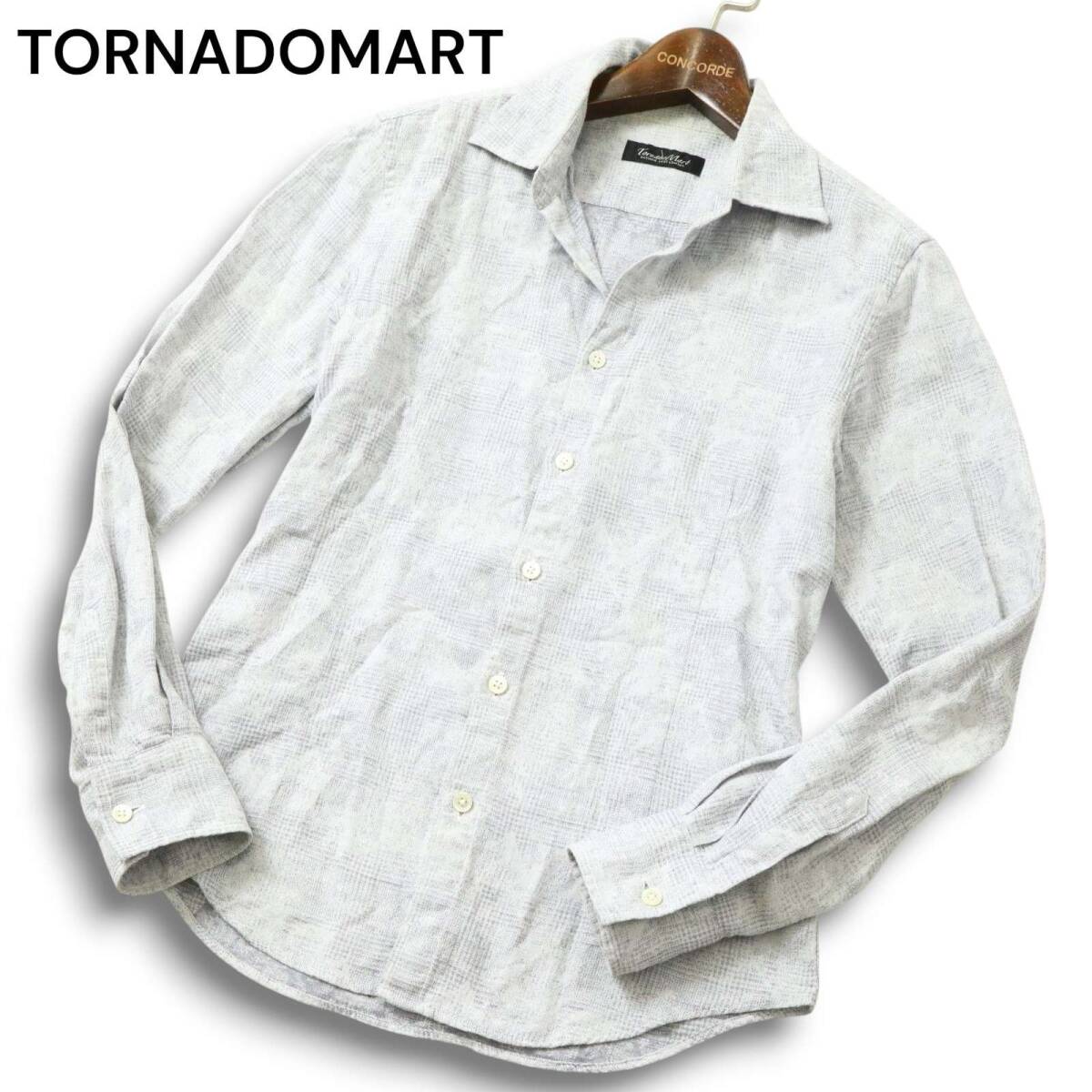 TORNADOMART トルネードマート 通年★ シャドー グレンチェック ジャカード 長袖 シャツ Sz.M メンズ 灰 グレー 日本製