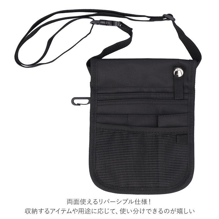 | 商品説明 | ・仕事グッズをまとめて収納できる、ウエストバッグ型のナースポーチが発売。 ・両面使えるリバーシブル仕様!収納するアイテムや用途に応じて、使い分けできるのが嬉しい。 ・表面にはメッシュポケット×1、カッターやペンなどが入る細めのペンポケット×3、オープンポケット×2、フック×1を装備。 ・裏面は取り出しやすいように斜めに設計されたメッシュポケット×1、オープンポケット×1、ファスナーポケット×1、フック×1。 ・看護用品や文房具をすっきり収納できて便利◎ ・ウエストベルトはバックルでワンタッチ着脱!サイズ調整も可能。 ・ユニセックスで使えるシンプルなデザイン。 ・介護や医療現場だけでなく、軽作業やガーデニング、DIY作業時など幅広いシーンで活躍。 |