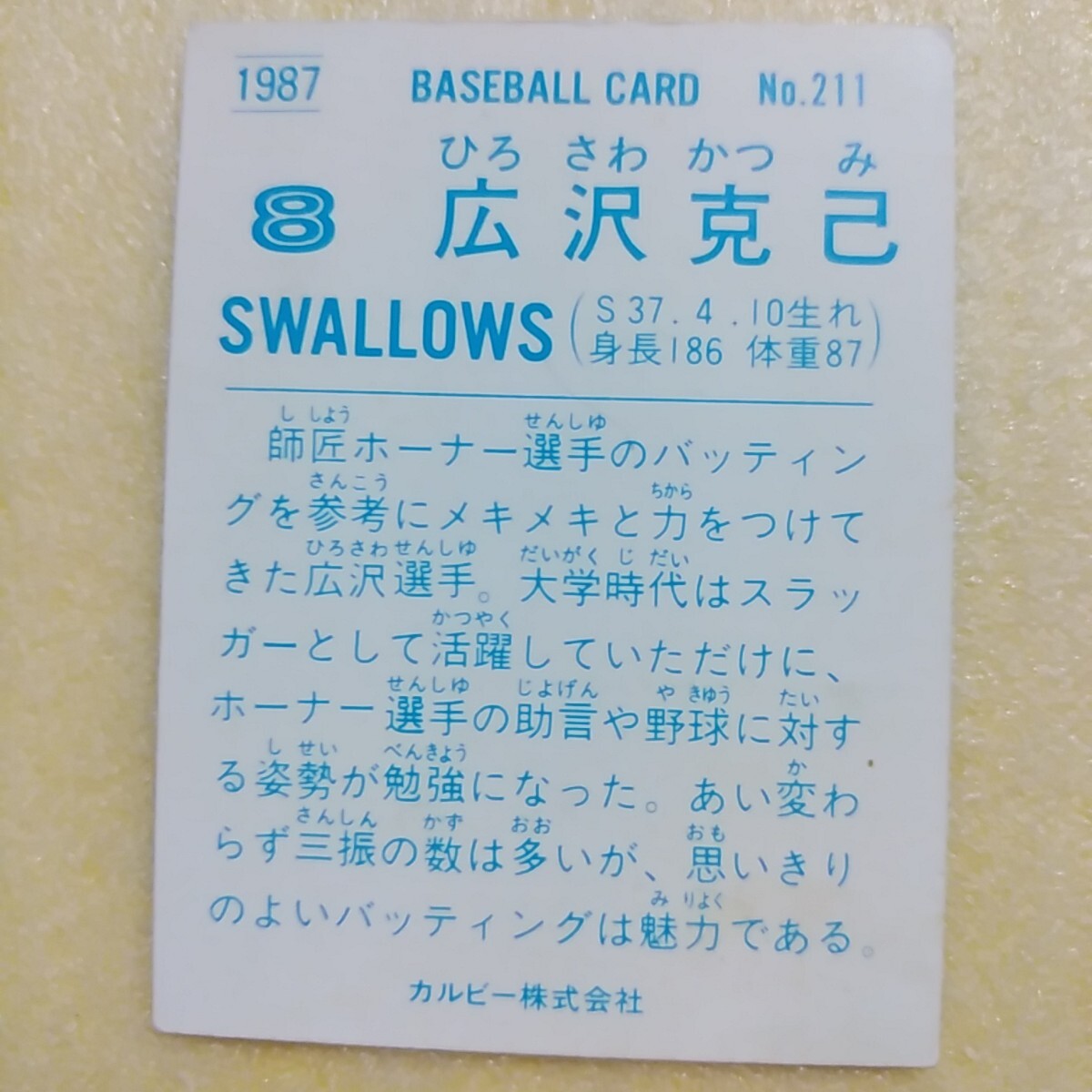 1987カルビー野球カード№211広沢克己(ヤクルトスワローズ)