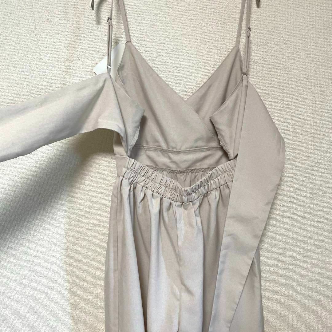 ストラップが細く、華奢見えするキャミタイプのオールインワンです