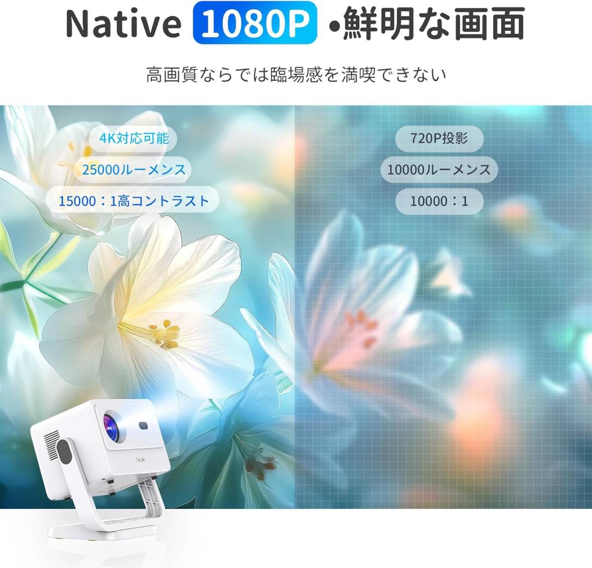 1080P プロジェクター 家庭用 4K対応 天井投影 25000LM 高輝き度