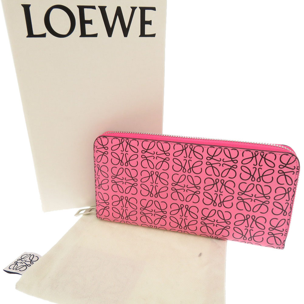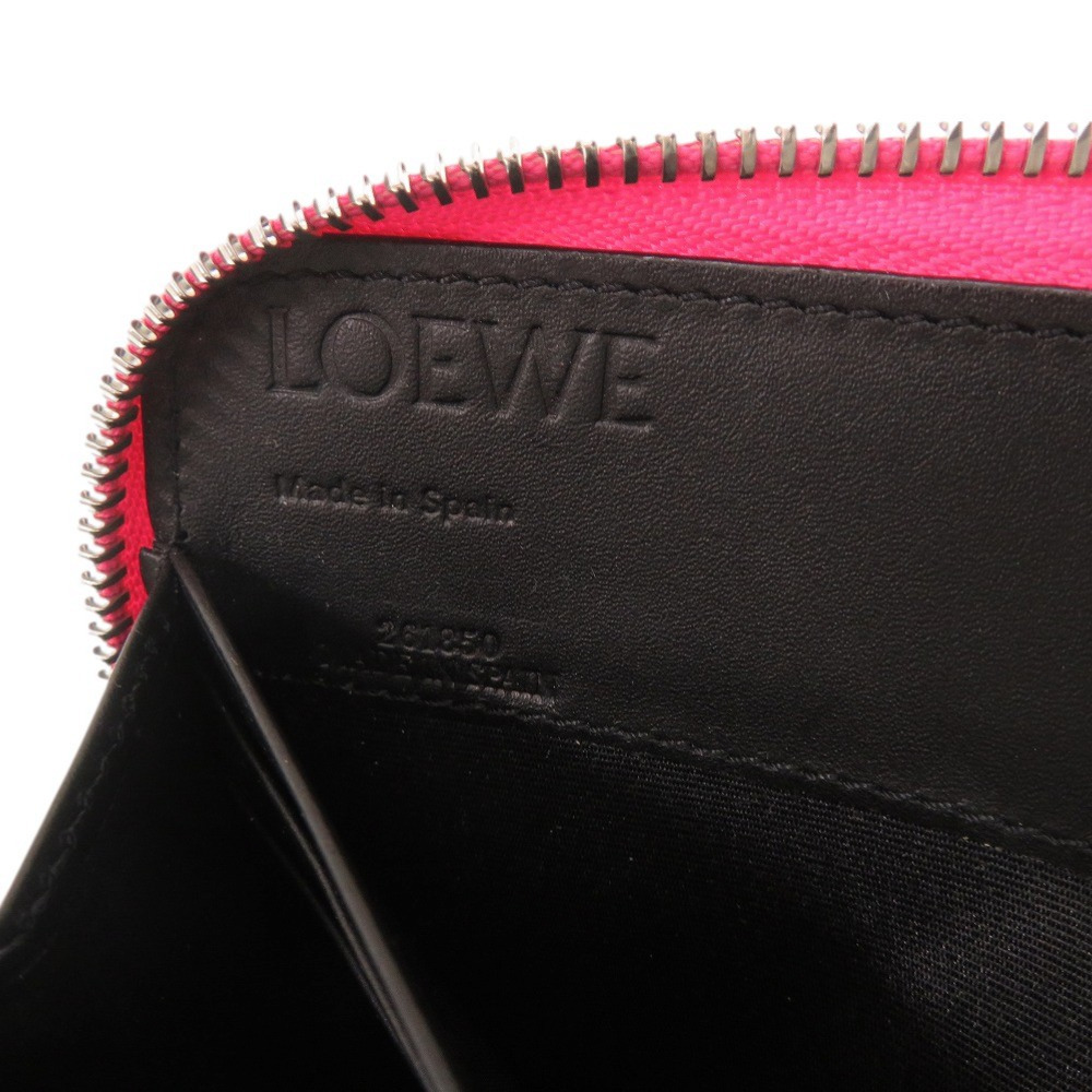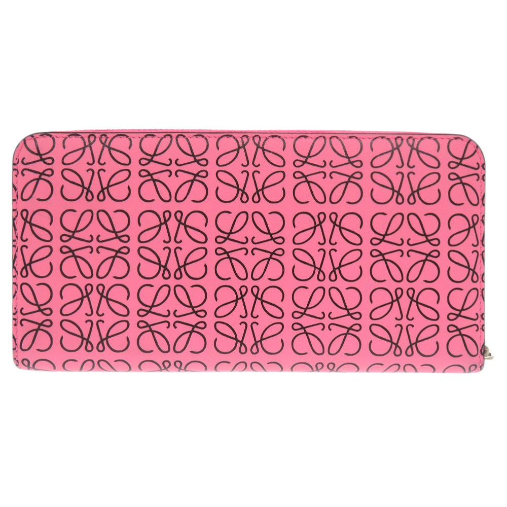 新品同様 ロエベ アナグラム 261850 レザー ピンク ラウンドファスナー 長財布 0943 LOEWE
