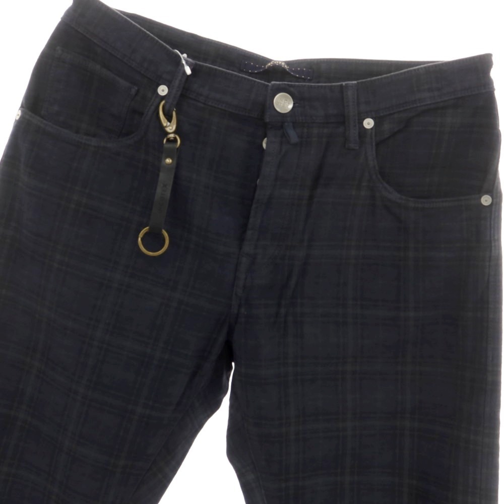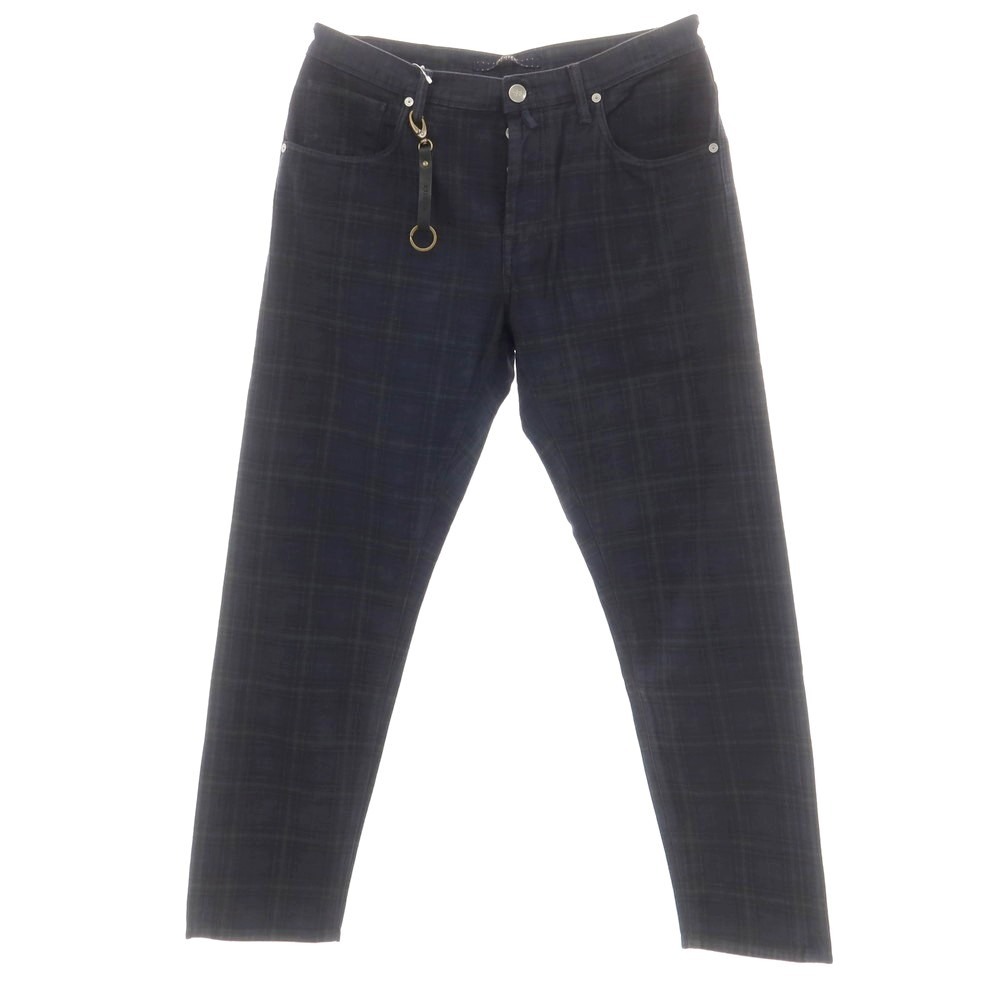 INCOTEX BLUE DIVISIONのテーパード5ポケットパンツ。 インコテックスらしいすっきりとした美脚性はキープしながらも、メリハリのある強めのテーパードシルエットで仕立てています。ほのかな起毛感がある柔らかなストレッチコットンを用い、絶妙のガーメントダイ&ウォッシュ加工によって風合い豊かに仕上げています。主張を抑えた上品なチェック柄がポイントで、カジュアルシーンはもちろん、ジャケットと合わせてもエレガントな雰囲気を演出できる一本になっています。