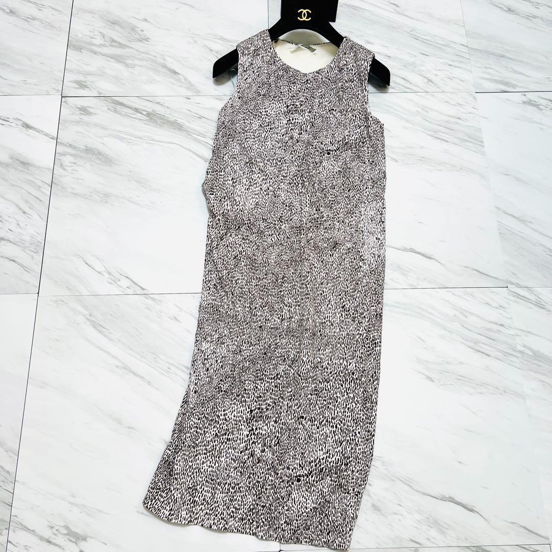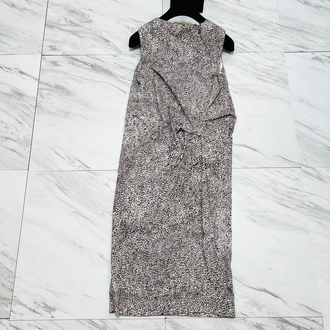 :ロングワンピース ロングドレス 総柄 ヒョウ柄風 レオパード風 タイト タック 美ライン 細見え