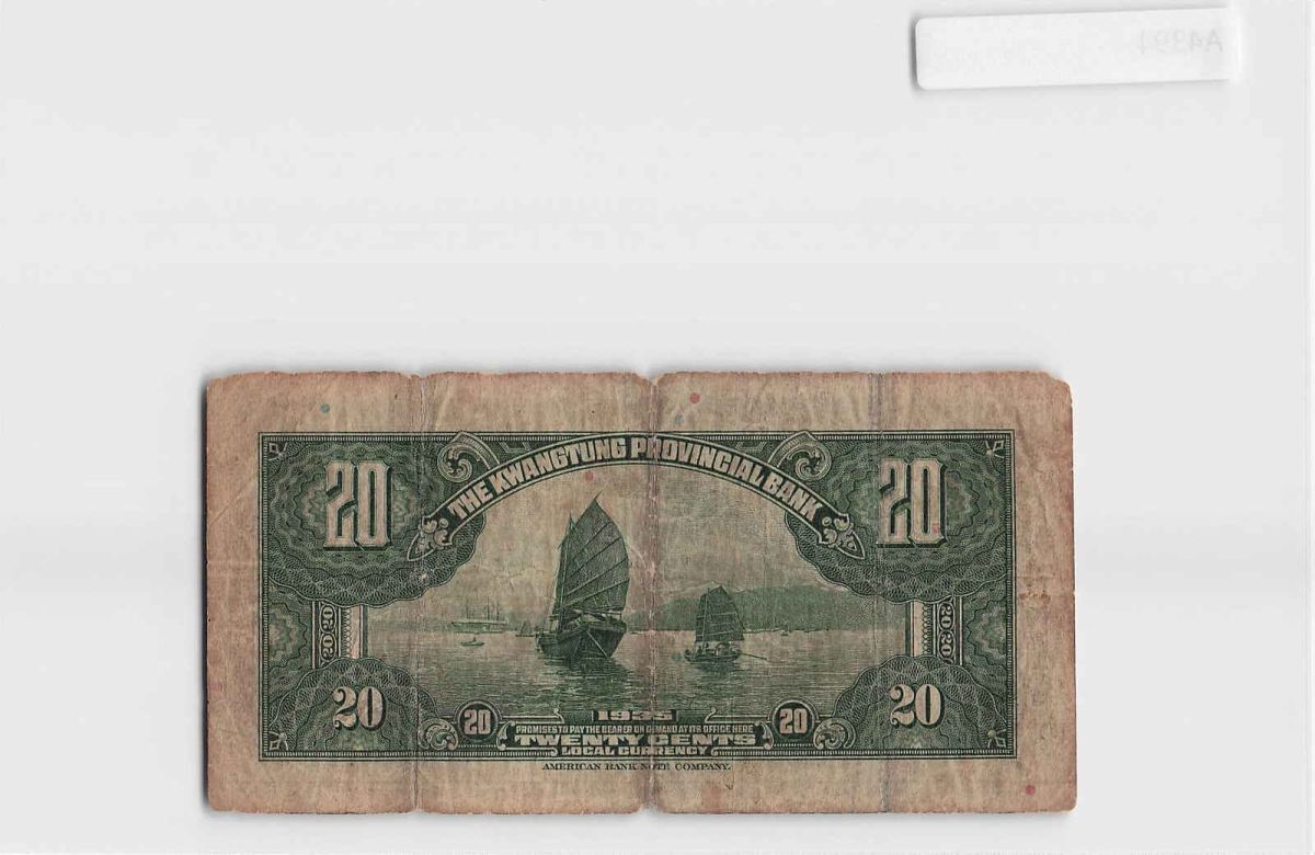 *[令]中国紙幣 広東省銀行 2角(1935)[A4394]7l9