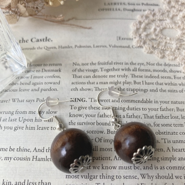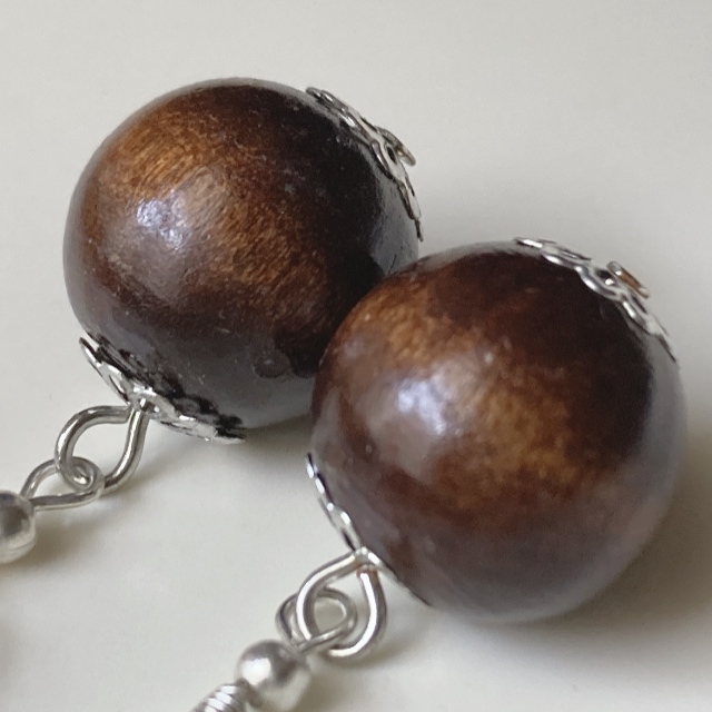 ピアス ウッド ブラウン こげ茶 シルバー ゆらゆら 大玉☆vintage jewelry accessoriesR0690