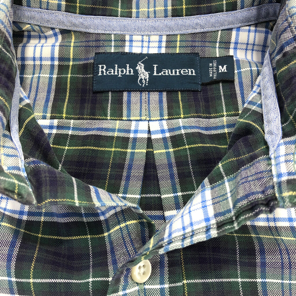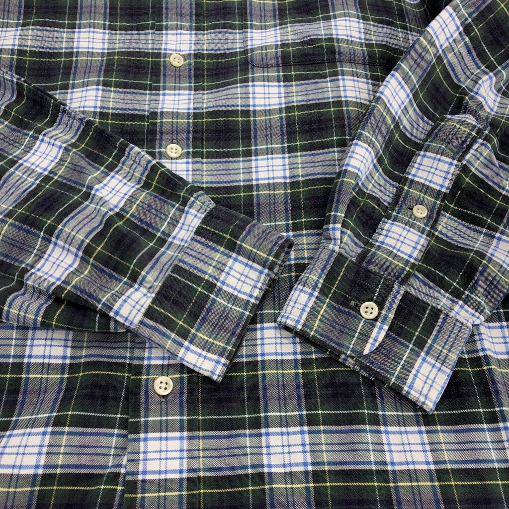 [商品管理番号] U6215 [ブランド] RALPH LAUREN/ラルフローレン [サイズ] M [実寸サイズ] 肩幅:約47cm 着丈:約79cm 身幅:約58cm 袖丈:約64cm [主な素材] 表地 : コットン [色] グリーン [仕様] 90年代 ボタンダウン タータンチェック [状態] キズ:袖 | |||