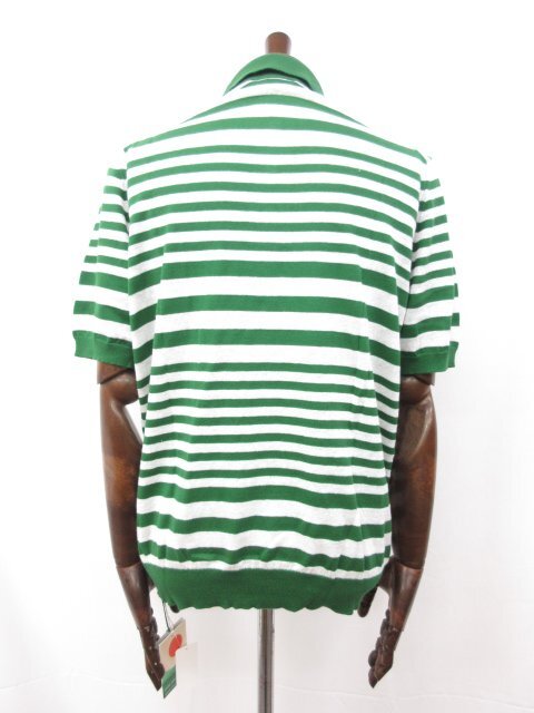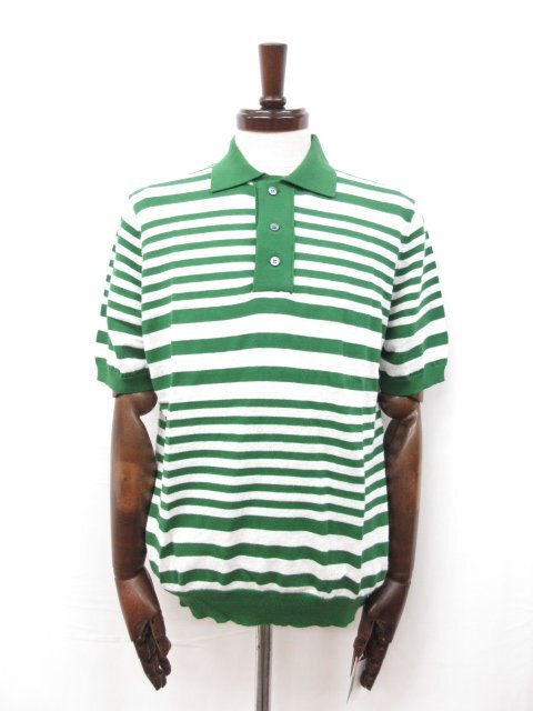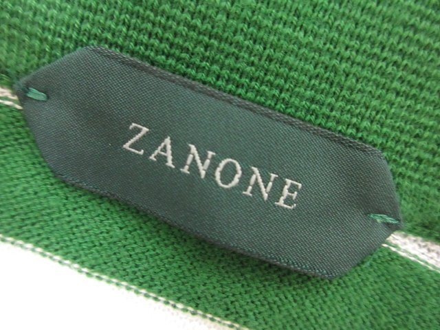未使用【ザノーネ ZANONE】 812966 ZM345 Z5487 定価44000円 リネン混 ボーダー 半袖ニットポロシャツ (メンズ) size44 緑×白◯10ZZN0761